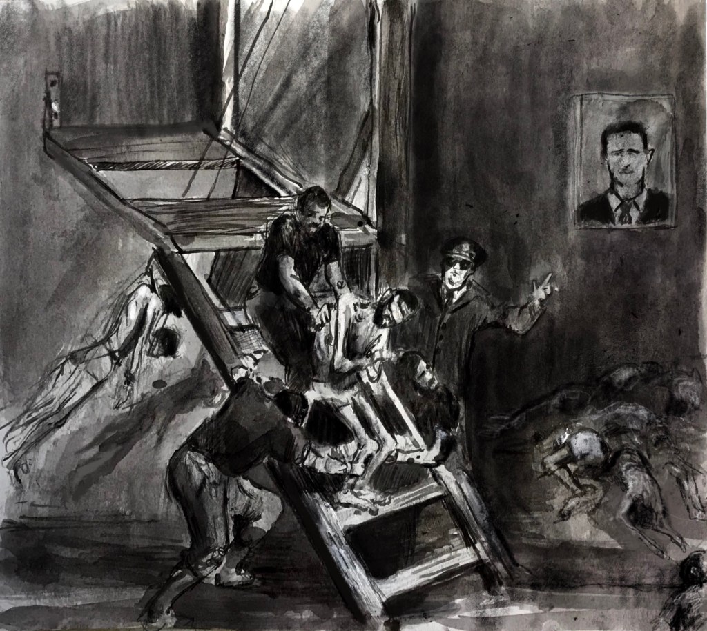 Sketch. #inktober2020 #inktober2020day2Inspired by Goya’s “Disasters of War” (right).In #Assad ‘s hell hole prisons, detainees are given a 30 second “trial” before they are found guilty and executed. They are told ‘there is no god but Assad’ #DisastersOfWarSyria