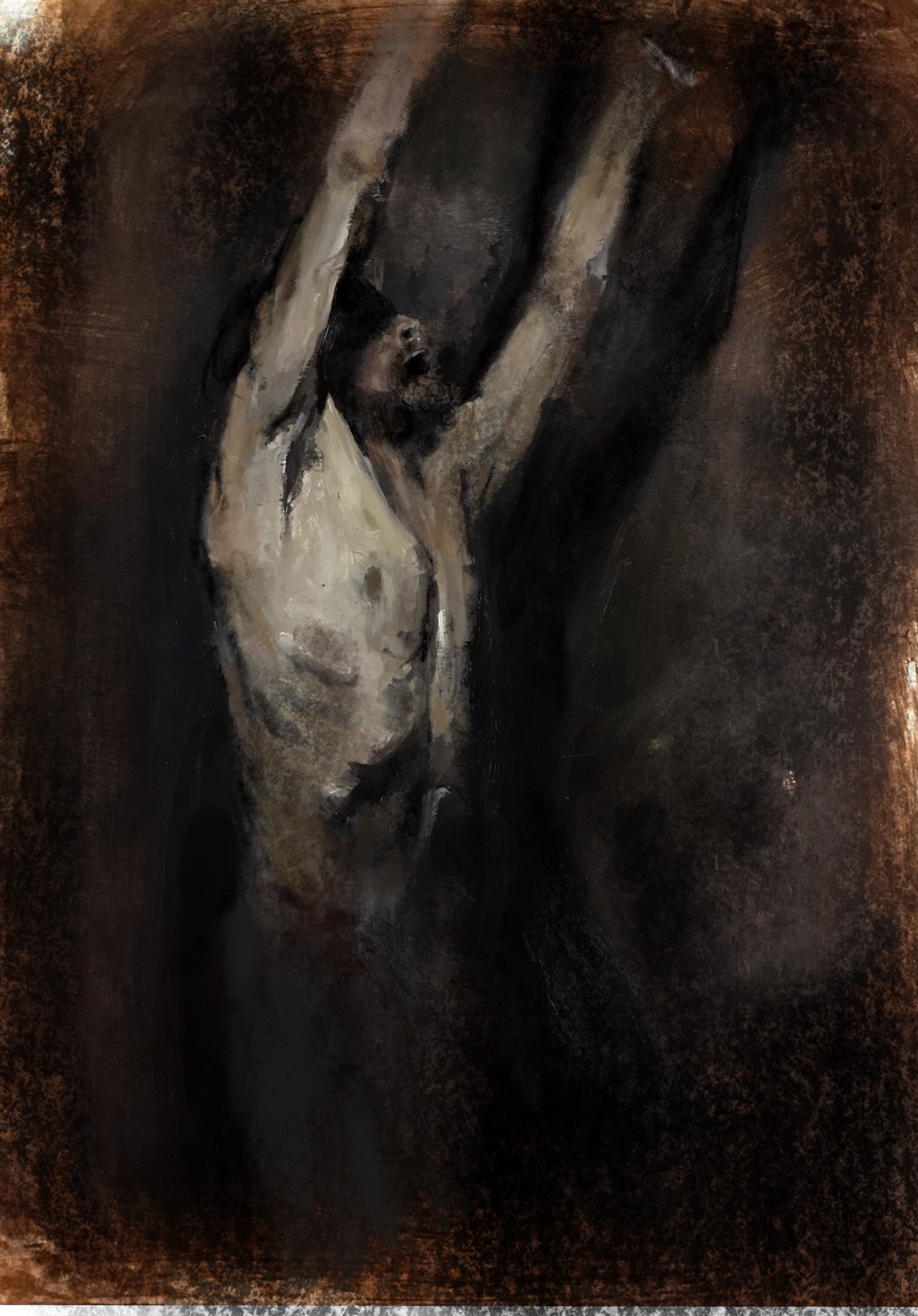 Oil sketch on paper. From the testimony of my friend Mohamed Al Shami, tortured for three years in #Assad ‘s prisons. “The guards beat us until their breathing grew ragged. You could smell their sweat. All you could do was hope they tired quickly.” @HolocaustMuseum