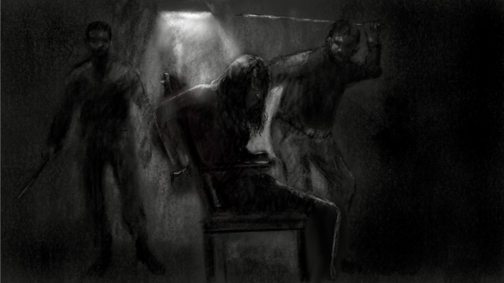 Sketch. Testimony of female detainee in #Assad prisons.“The torture marks are still present. I would lose consciousness with the electricity… [T]hey were hitting me on my lower legs below my thighs and on my back. They tortured me until my body started bruising … “ via @hrw