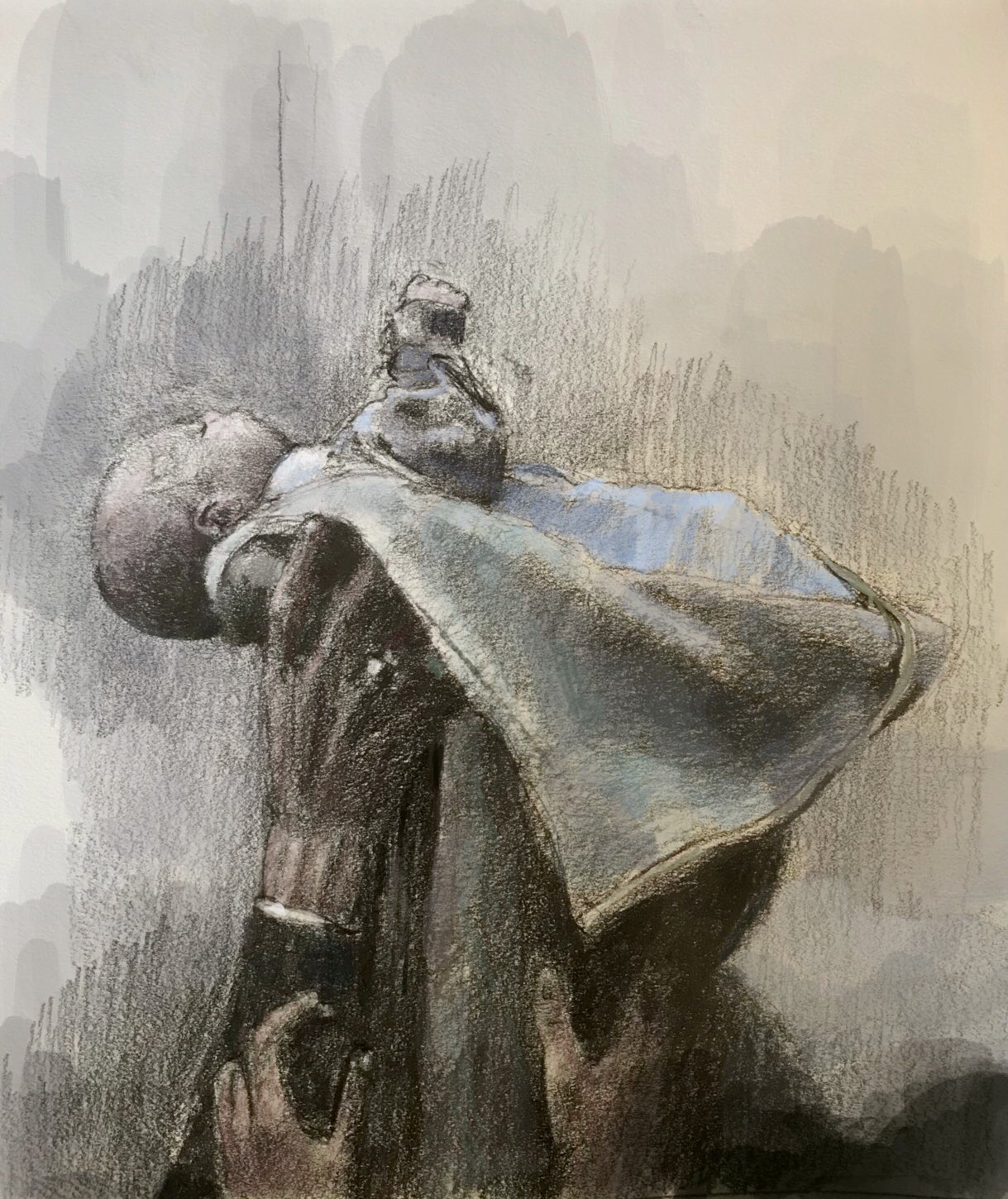 Sketch based on photo by @BassamKhabieh . Bassam,your photographs are haunting, soul wrenching, and invaluable as a witness to the strength and suffering of your #Syrian brothers and sisters. May your images hasten the prosecution of #Assad and his henchmen. @AliaMalek