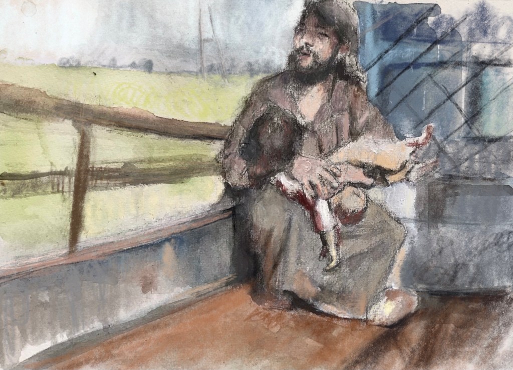 Sketch from eyewitness photo. A man desperately tries to save a dying child in #Idlib #Syria . She was killed by a #PKK bombardment on #Turkish positions last week. @Charles_Lister @snhr @HolocaustMuseum @RonanLTynan @KenRoth @MarkCutts @RESCUEorg