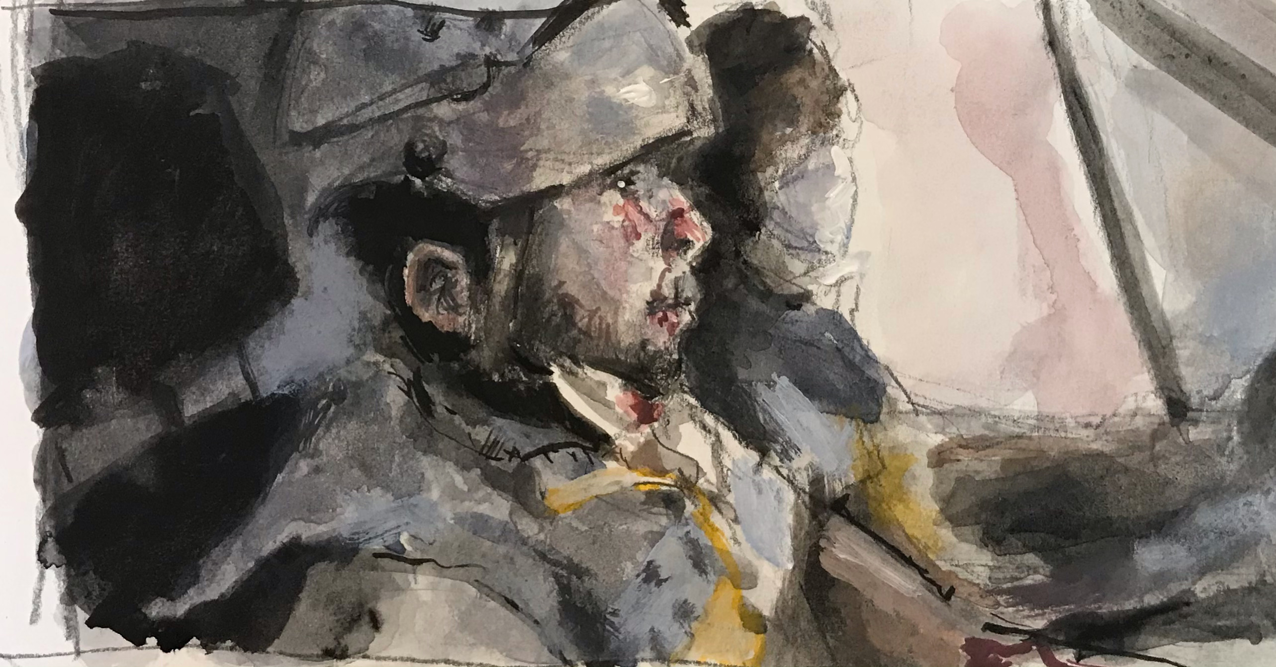Sketch from eyewitness photo (incl. #gouache) NOW! 7 people were killed so far, including medical workers, & many injured, including 3 #WhiteHelmets after missile attacks targeted a hospital in #Afrin #Aleppo from the areas controlled by the #SDF and #Assad regime forces! Via @SyriaCivilDef