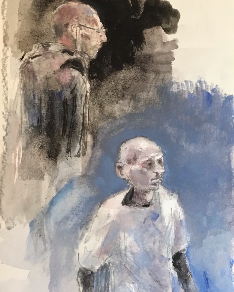 Sketch from eyewitness photo (gouache, ink, acrylic, homemade watercolor).Yesterday, several human skeletons emerged from #Assad ‘s torture prisons. The man on top is in his early 30s, and looks 90, the man below was once robust and strong. According to @snhr As of 2019, 143,176 individuals are still detained.@WHO @hrw