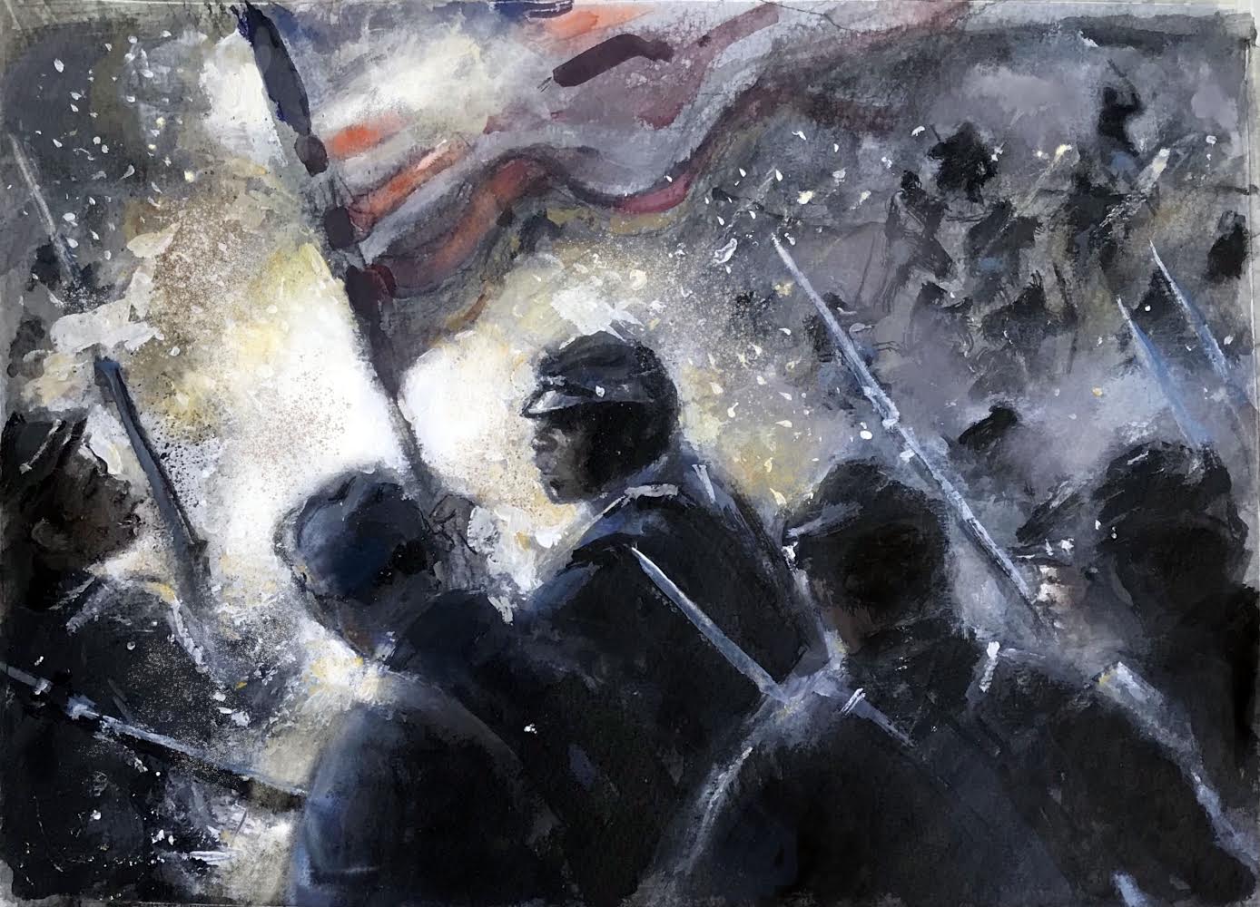 Painting (incl. #gouache #acrylic) On July 18th, 1863, the 54th Massachusetts reg.,composed of African American soldiers, led the assault on Ft. Wagner, S.C. Through a hail of bullets and shot, the 54th scaled the fort. The battle was lost, but the 54th defined courage and honor.