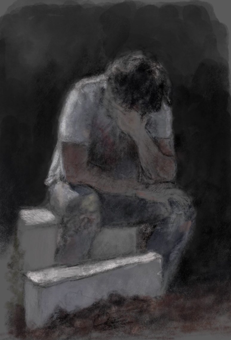Sketch from photo by Omar Haj Kadour @AFPphoto . Syrian artist Aziz Asmar mourning the death of his young assistant Hussein, who was murdered yesterday by #Assad #Putin attacks on #Idlib #Syria . Love to you Aziz, no words can touch your pain. @ejbeals @HolocaustMuseum
