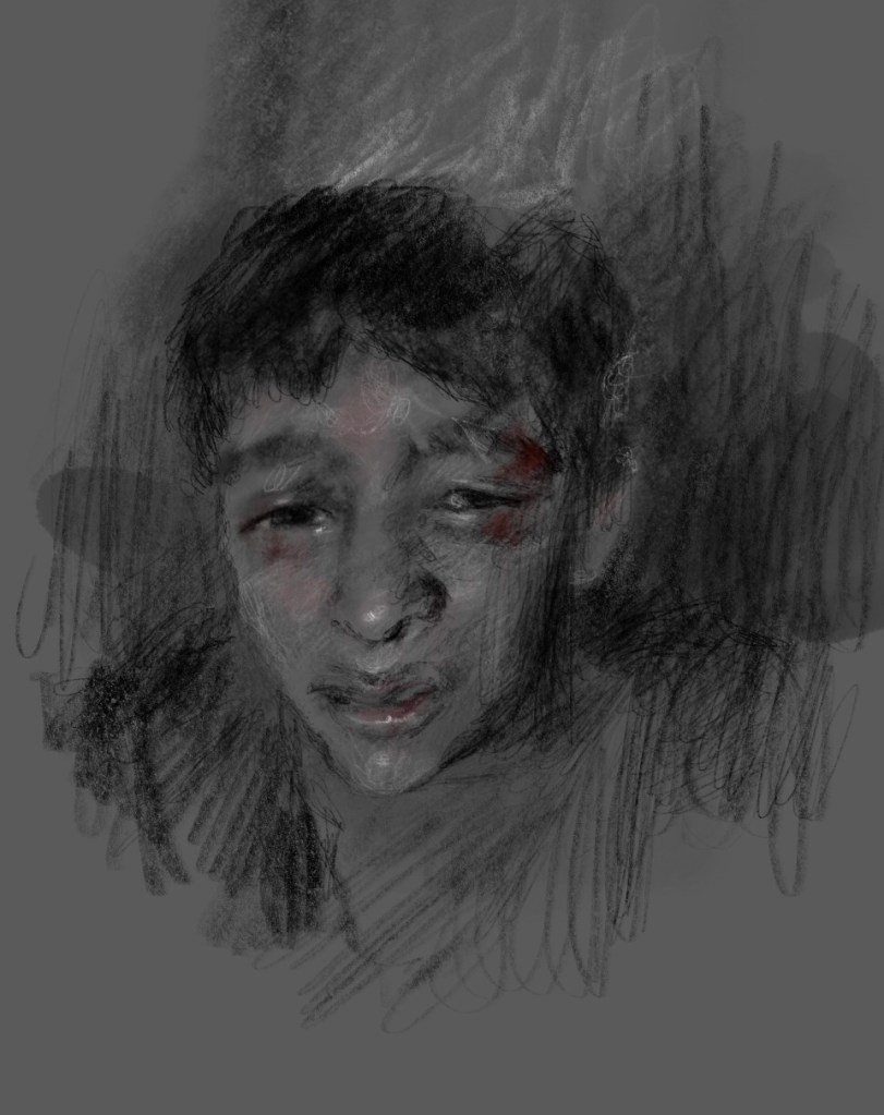 Sketch from eyewitness photo. NOW! Security forces in #Iran are killing peaceful protestors in #Khuzestan ! At least 8 #civilians have been murdered for demanding CLEAN WATER, The regime has cut off the internet in the area to silence the people! SHOUT FOR THEM! @AlinejadMasih