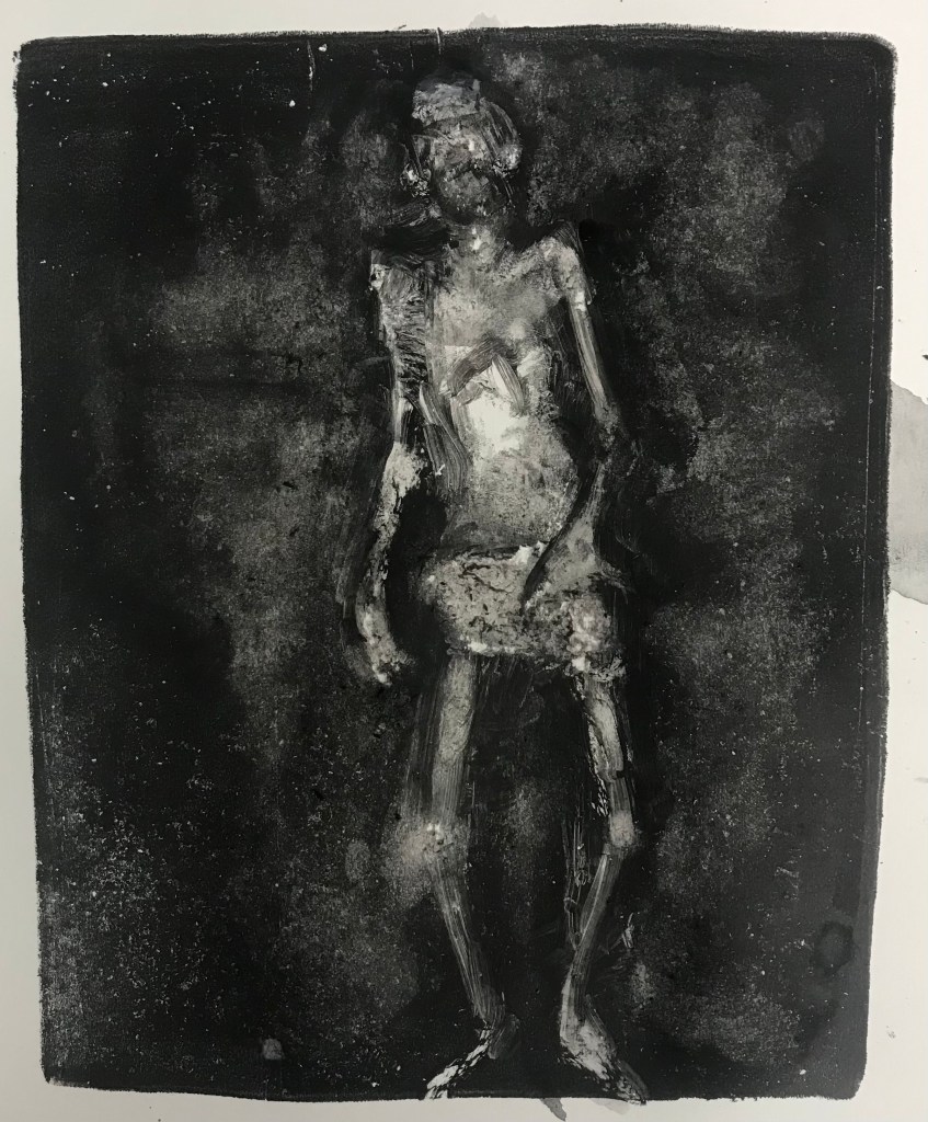 Sketch (#monotype #acrylic) from #CaesarPhotos. Alla Mousa, a Syrian doctor in #Assad’s torture centers, has been charged with #CrimesAgainstHumanity for torturing and murdering people. He was arrested in Germany. I hope this will be one of MANY arrests of #Assad’s henchmen! @UN