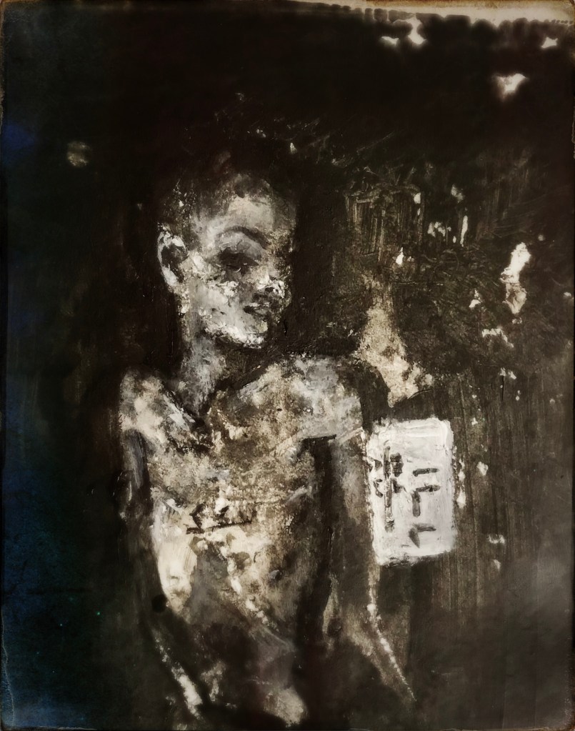 Sketch (#monotype, #acrylic) from #CaesarPhoto“There were bruises filled with pus from infections left untreated. Sometimes the bodies were covered in blood, and the blood was fresh.” -‘Caesar’ former medical photographer in #Assad torture centers, #Syria . 100k + still missing! Quote from “Operation Caesar” by @garancelecaisne