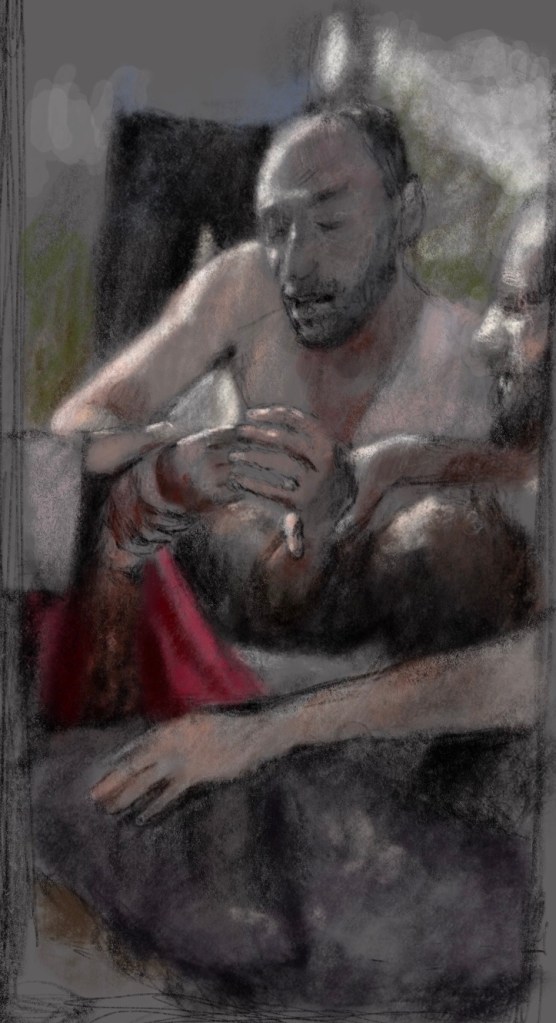 Sketch from eyewitness video. “I just want to see his face” cries a grieving father as he holds all that’s left of his child, an arm. 0 August 20, 2021 Written by marcnelsonart Assad and #Russia continue to massacre the #civilians of #Idlib #Syria in front of an indifferent world. @HolocaustMuseum @k7ybnd99 @UN @WHO Share this: Click to share on Facebook (Opens in new window) Facebook Click to share on X (Opens in new window) X Like Loading...