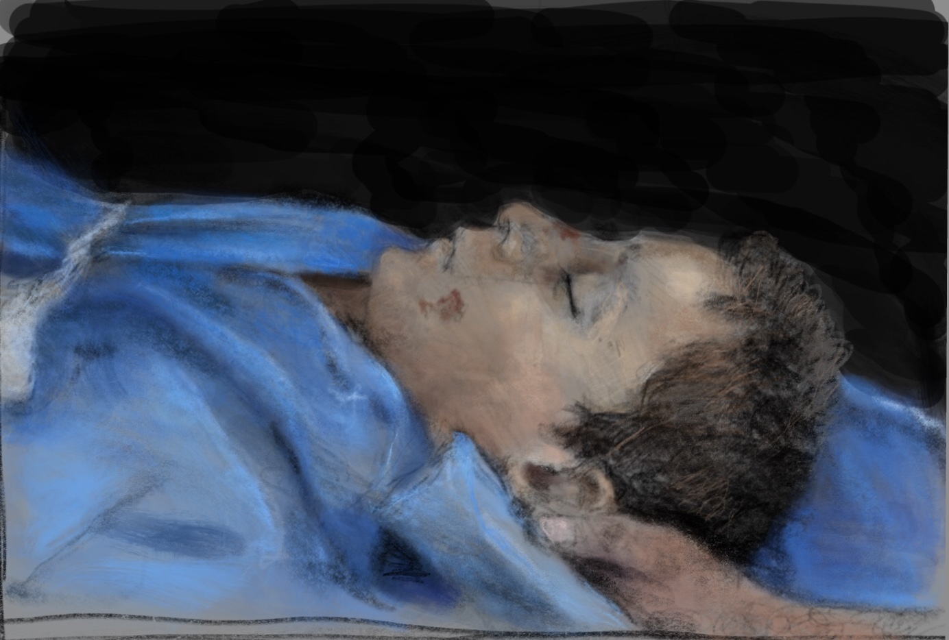 Sketch from eyewitness photo. This week, young Ali was walking in the fields of #Idlib #Syria, when he was targeted by #Russian warplanes. #Assad #Putin murdered this child. He will never dream, laugh, cry, or smile again. @HolocaustMuseum @k7ybnd99 @syrianetf @RonanLTynan