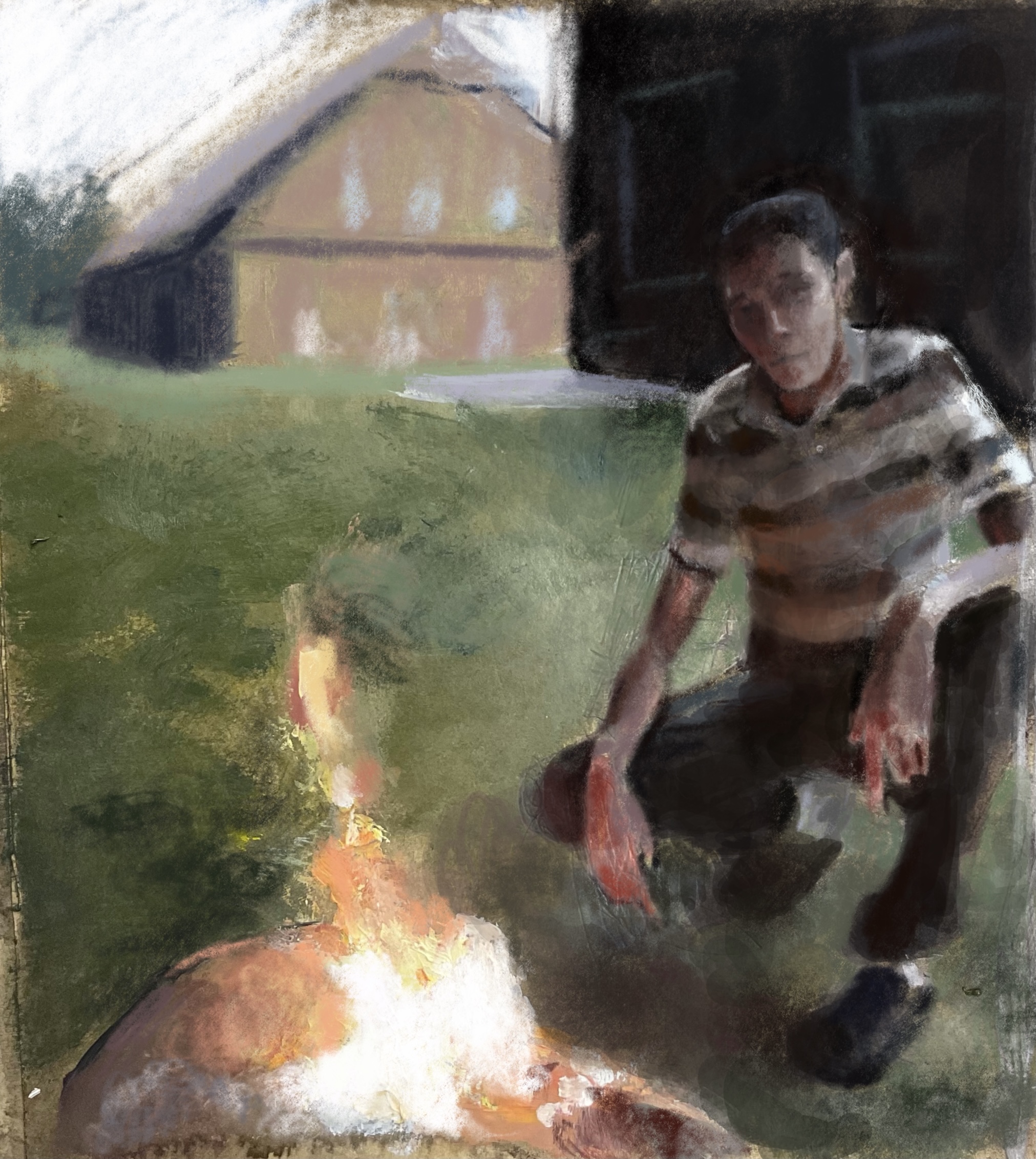 Sketch incl. oil on paper, homemade ink.One of my students saw me sketching #MazenAlHummada and asked me how old he was- ‘mid 40s’ I said.‘Why does he look like a little boy?’ she asked. ‘His soul is forever young’ I answered. 583 days ‘disappeared’ by the #Assad regime.