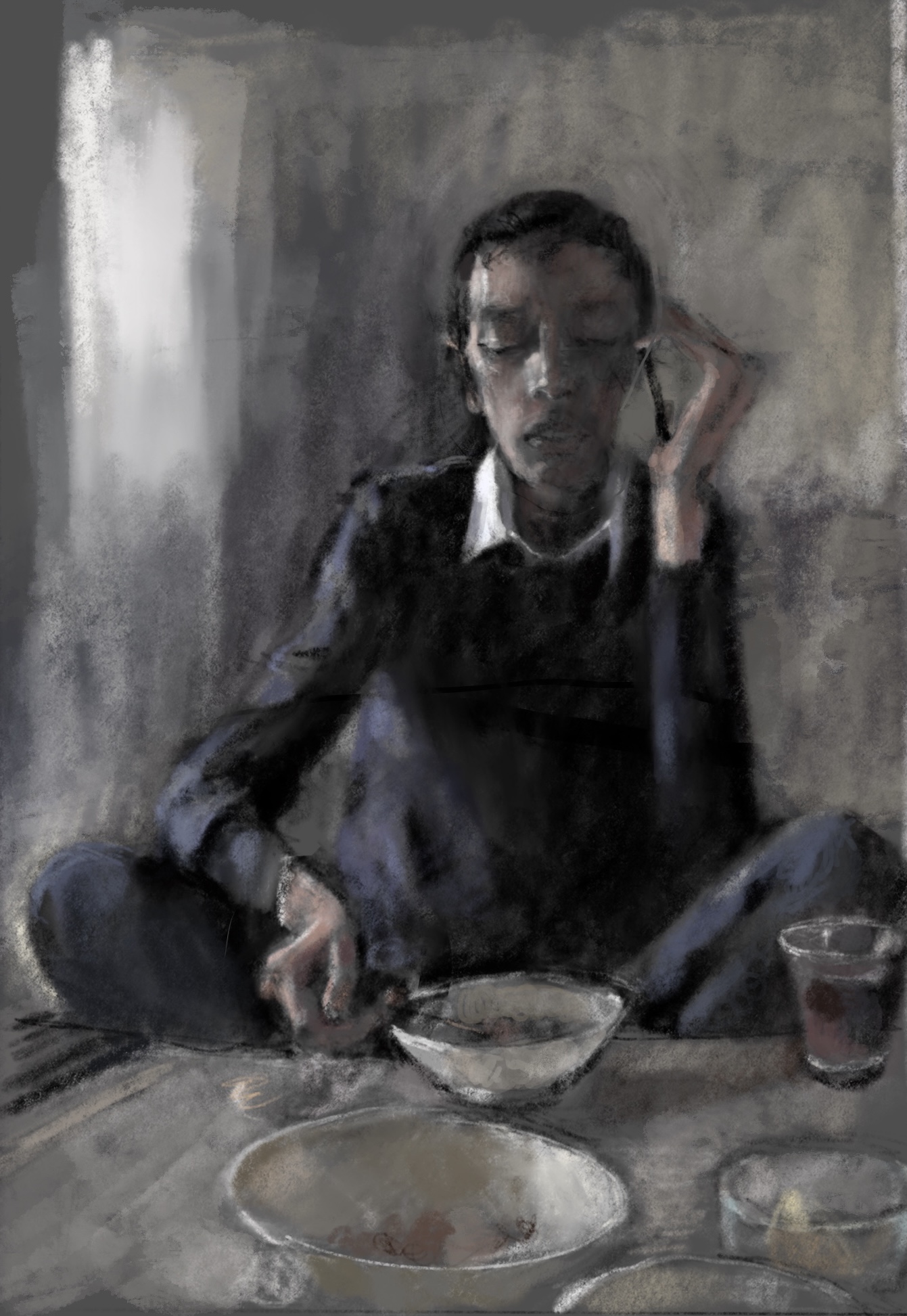 Sketch from photo archived @syrianetfMy friend #MazenAlHamada was tireless in his efforts to bring #Assad ‘s henchmen to justice. He worked while he walked, traveled, ate, breathed. I hope wherever he is, he knows his advocacy has led to #Koblenz and #Frankfurt trials.688 gone