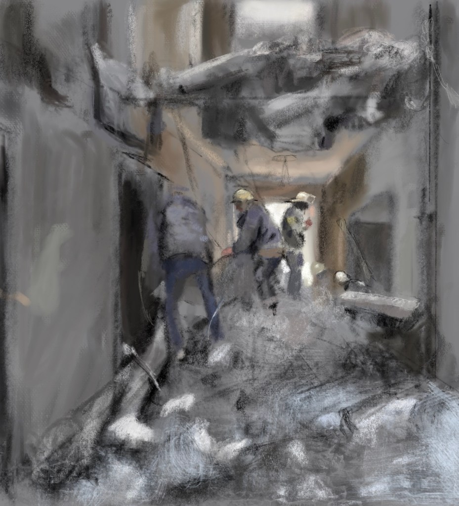 Sketch from eyewitness photo. As I write this #Putin continues to commit #WarCrimes in #Ukraine . His bombs and violence are astronomically uglier when compared to the courage and strength of the free #Ukrainian people. #Putin will lose, evil will be defeated. #StandWithUkraine