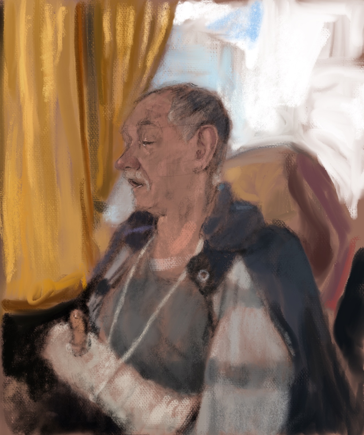 Sketch from photo by Dr. @sahloul81 from a @MedGlobalOrg mission to #Ukraine. Grief beyond imagining. A wounded man weeps for his wife, who bled to death in front of him, murdered by #Russia #Putin soldiers. #WarCrimes @johnsweeneyroar @badiucao @KyivIndependent @WHO @UN