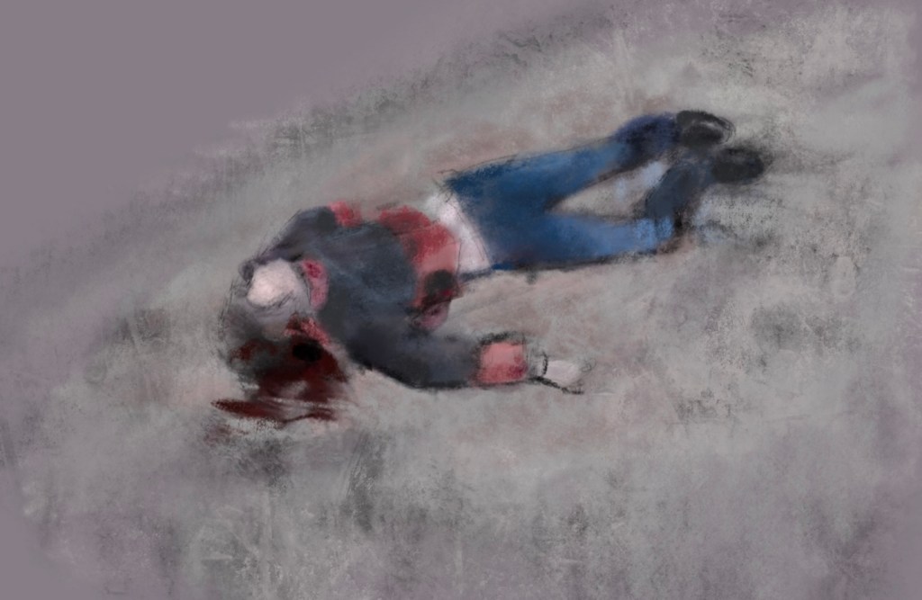 Sketch from eyewitness video. I watched in horror as a traumatized survivor of the #KramatorskMassacre scanned the scene moments after #Putin #Russia deliberately targeted #civilians . This child is one of over 50 #Ukrainian victims. #PutinIsaWarCriminal #RussianWarCrimes