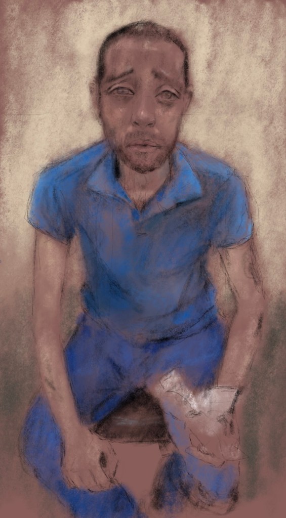 Sketch from eyewitness photo. A shattered, traumatized, soul, dumped in the street after unimaginable torture in #Assad ‘s prisons. A sadistic regime, propped up by #Putin #Russia has stolen so many lives that eternities in Hell wouldn’t cleanse their blood soaked hands. #Syria
