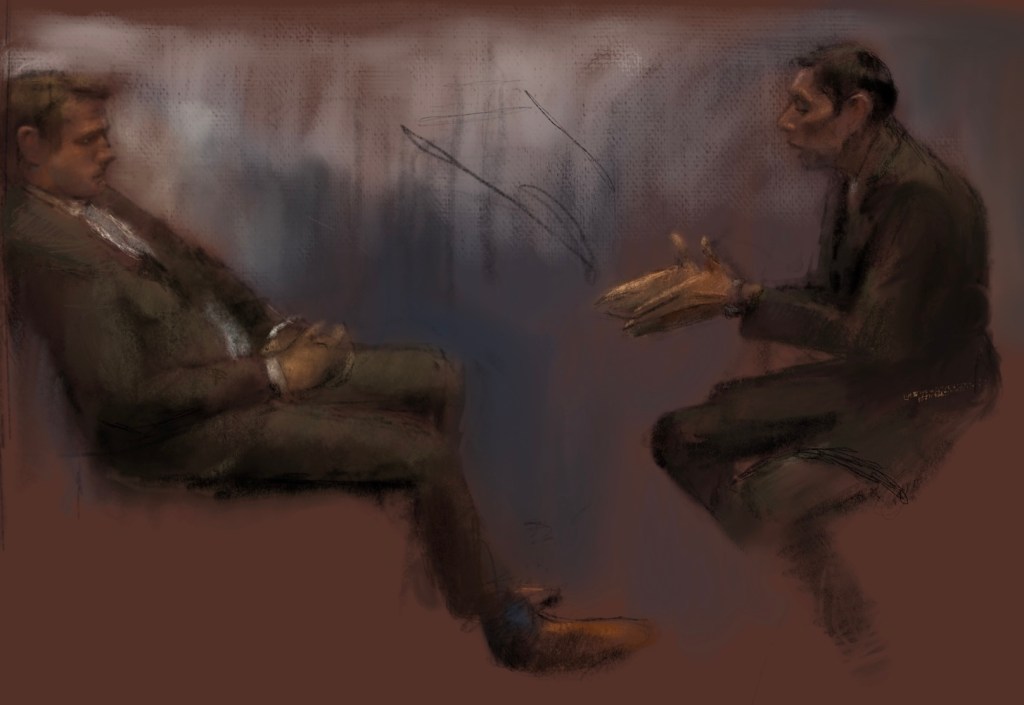 Sketch. My friend #MazenAlHamada , a survivor of #Assad torture, appealed tirelessly to members of #Congress for #justice. Rep. @AdamKinzinger , while we differ in many views, is a man of #Integrity who risked his career to call out #Trump lunacy.Mazen missing 822 days.