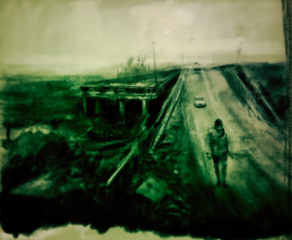 Sketch based on photo by #Ukranian #doctor and #artist Vladyslav Krasnoshchok @VlKrasnoshchok .Krasnoshchok captures the devastation wrought by #Russia and the courage of #Ukranian civilians and soldiers using film and a home darkroom. Please follow this artist!