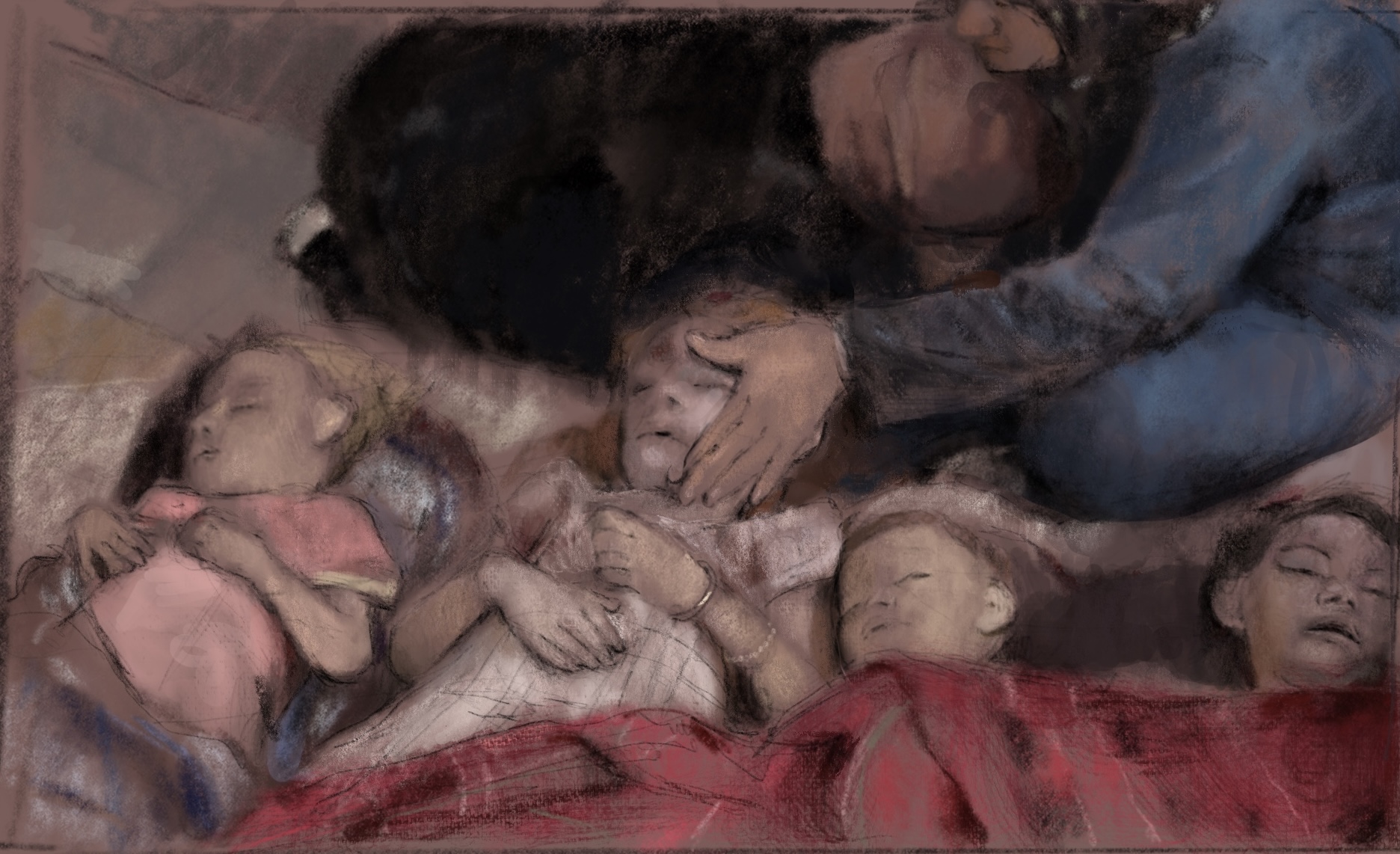 Sketch from eyewitness photo. A few days ago, #Putin #Russia resumed murdering children in #Idlib #Syria . There had been a brief respite from his child killing in Syria as #Russia was being destroyed in #Ukraine , but now the skies are raining death again.
