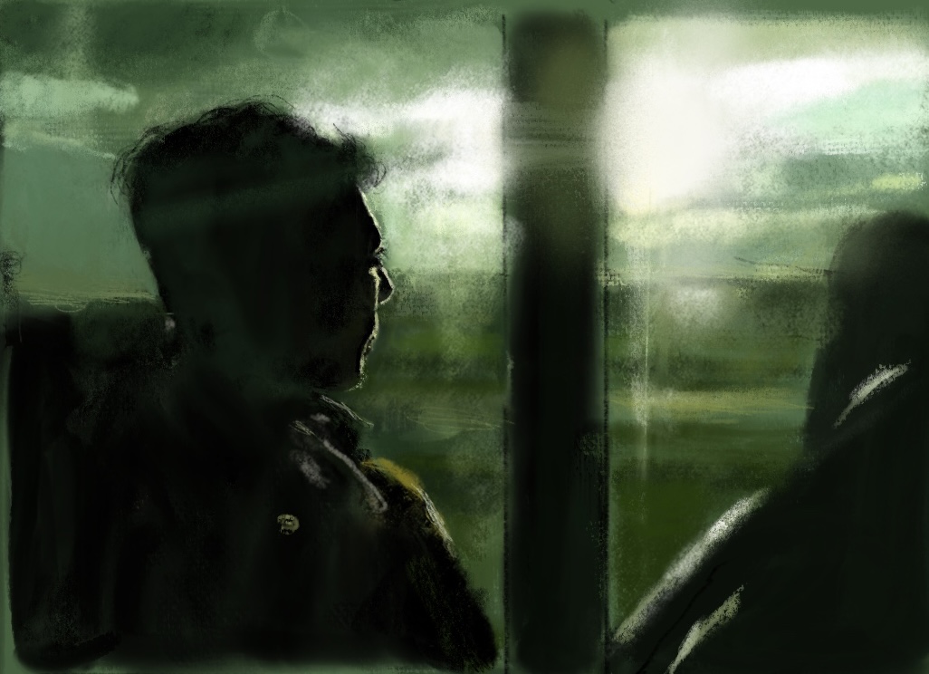 Sketch.Many of my friend #MazenAlHamada ‘s photos show him in transit-on a bus, train, plane, traveling to expose #Assad #Putin ‘s #WarCrimes to the world. Now he has been disappeared in #Syria for 916 days, it is our duty to continue his mission.@HolocaustMuseum @badiucao