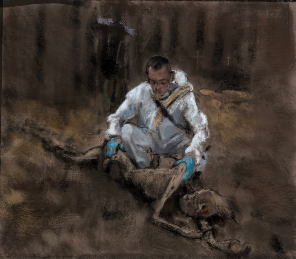 Sketch from eyewitness photo. As mass graves are exhumed in #Izium #Ukraine , #Putin #Russia ‘s hellish hallmarks of torture and execution are revealed. In #Syria and #Ukraine , #Putin is drowning in the blood of #civilians 0 September 18, 2022 Written by marcnelsonart PutinWarCrimes Share this: Share on Facebook (Opens in new window) Facebook Share on X (Opens in new window) X Like Loading...