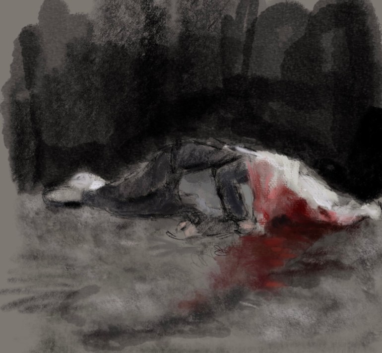Sketch from eyewitness photo. NOW!“Bloody terrorists fired rocket at convoy of civilian cars waiting to head from #Zaporizhzhia to the temporally occupied territories. Dozens were killed and wounded. When you think the worst news is over, #Russia does this.”Via @maria_avdv