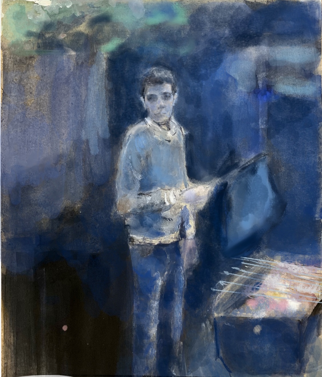 Sketch (incl. #gouache #ink )When my friend, activist and torture survivor, #MazenAlHamada was disappeared by the #Assad regime in #Syria , I quickly saved all of his @instagram posts, afraid they would be deleted. Here is Mazen, enjoying life, fanning kebabs.951 days missing.