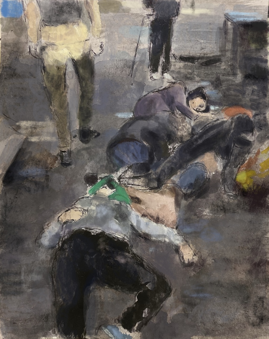 Sketch from eyewitness photo incl. #ink #gouacheTalking heads in #Russia calling for “carpet bombing” #Ukraine into submission. #Putin is escalating attacks on #civilians including here, in #Avdiivka in #Donetsk Oblast . @POTUS air protection NOW!@johnsweeneyroar @OzKaterji