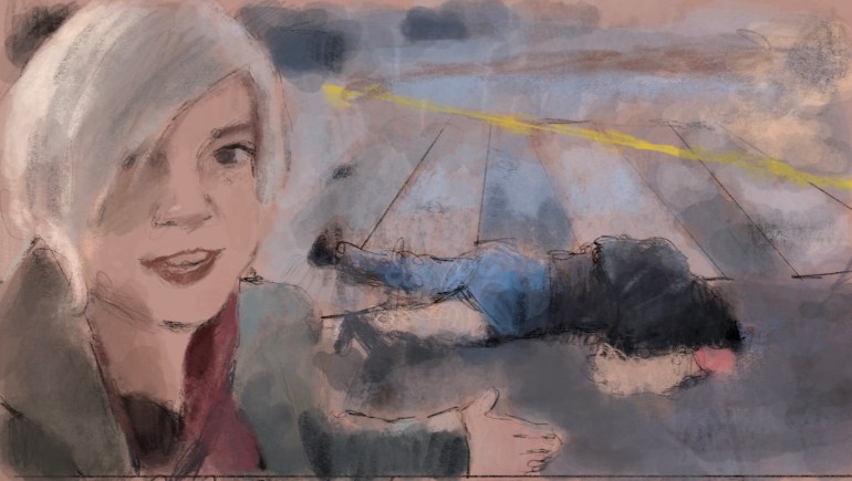 Sketch from eyewitness video.Sarah Ashton-Cirillo @SarahAshtonLV , a #trans activist, humanitarian, journalist, and now #medic with the #UkrainianArmy , courageously documents #Putin #Russia #WarCrimes . Blessings, love, and safety to her! @johnsweeneyroar @lizaclinwizard