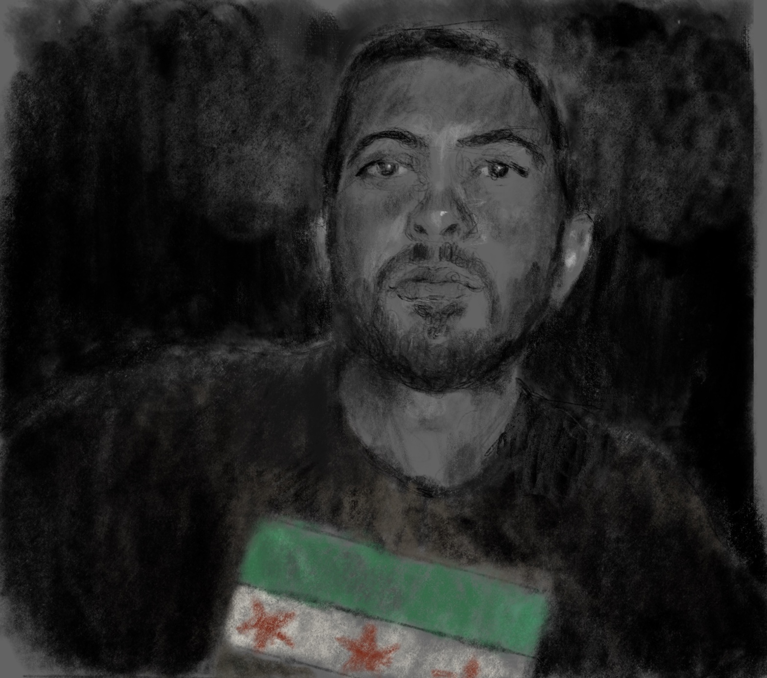 Sketch. Ahmed Al-Hajji, a #Syria n activist, and the first courageous soul to demand democracy and freedom on #Assad regime TV. Ahmed was murdered by regime shelling on #Aleppo . One of a series of portraits in collab with Dylan Connor Music for his “Unsung Heroes” project.
