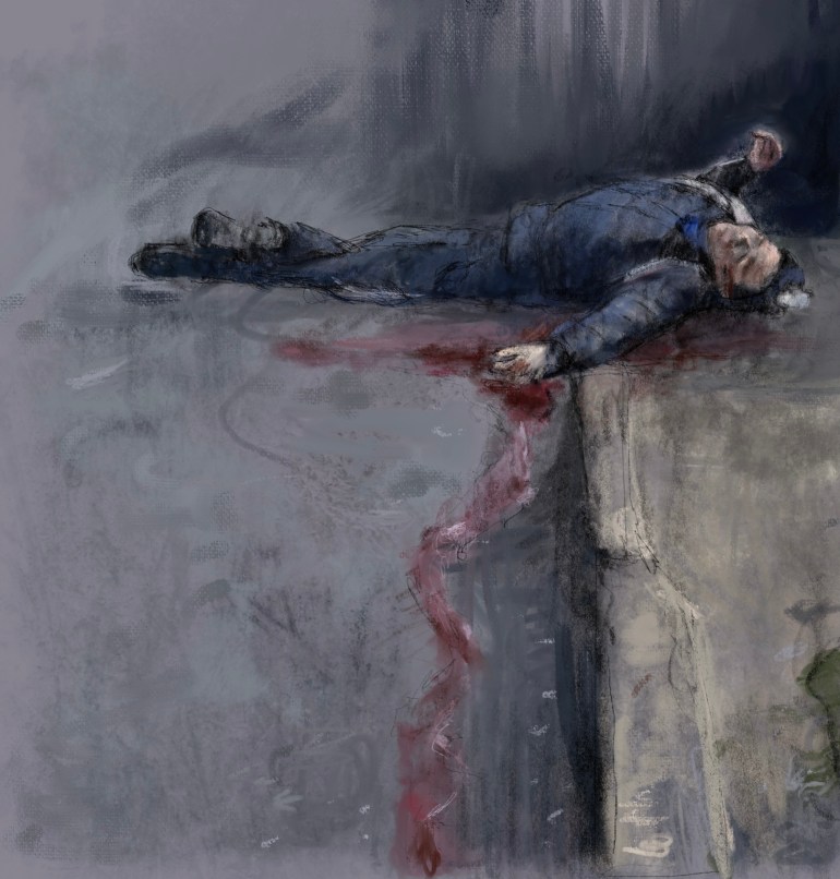 Sketch from eyewitness photo. #ChristmasEve2022 #Ukraine at least 10 killed, 35 injured in Russian attack on central #Kherson. @volodymyrzele17 said “it is killing for the sake of intimidation and pleasure.” #Putin #PutinWarCriminal @johnsweeneyroarVia @KyivIndependent