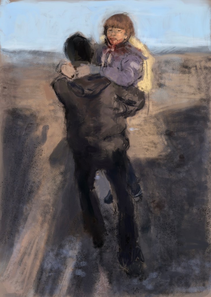 Sketch from eyewitness photo. A 13 year old girl was pulled from the rubble of her home after #Putin #Russia airstrikes on #civilians in #Kharkiv #Ukraine .Less than a year ago, this girl was living a normal life. Look at her face,her world has been torn apart. @johnsweeneyroar