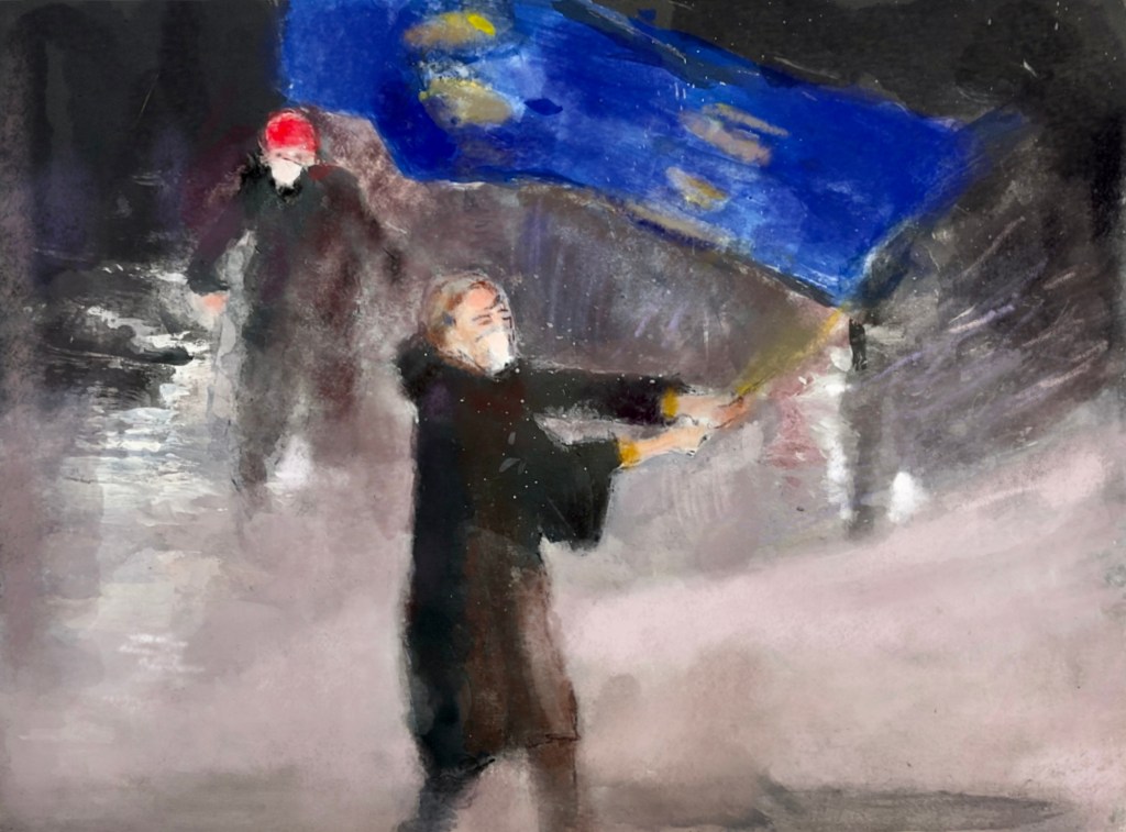 Sketch (incl. #gouache ) from eyewitness photo.A courageous woman is undaunted by #Georgia government’s fascist use of teargas and fire hoses in #TbilisiProtest . She is a defender of civil society! 0 March 10, 2023 Written by marcnelsonart InternationalWomansDay Share this: Share on Facebook (Opens in new window) Facebook Share on X (Opens in new window) X Like Loading...