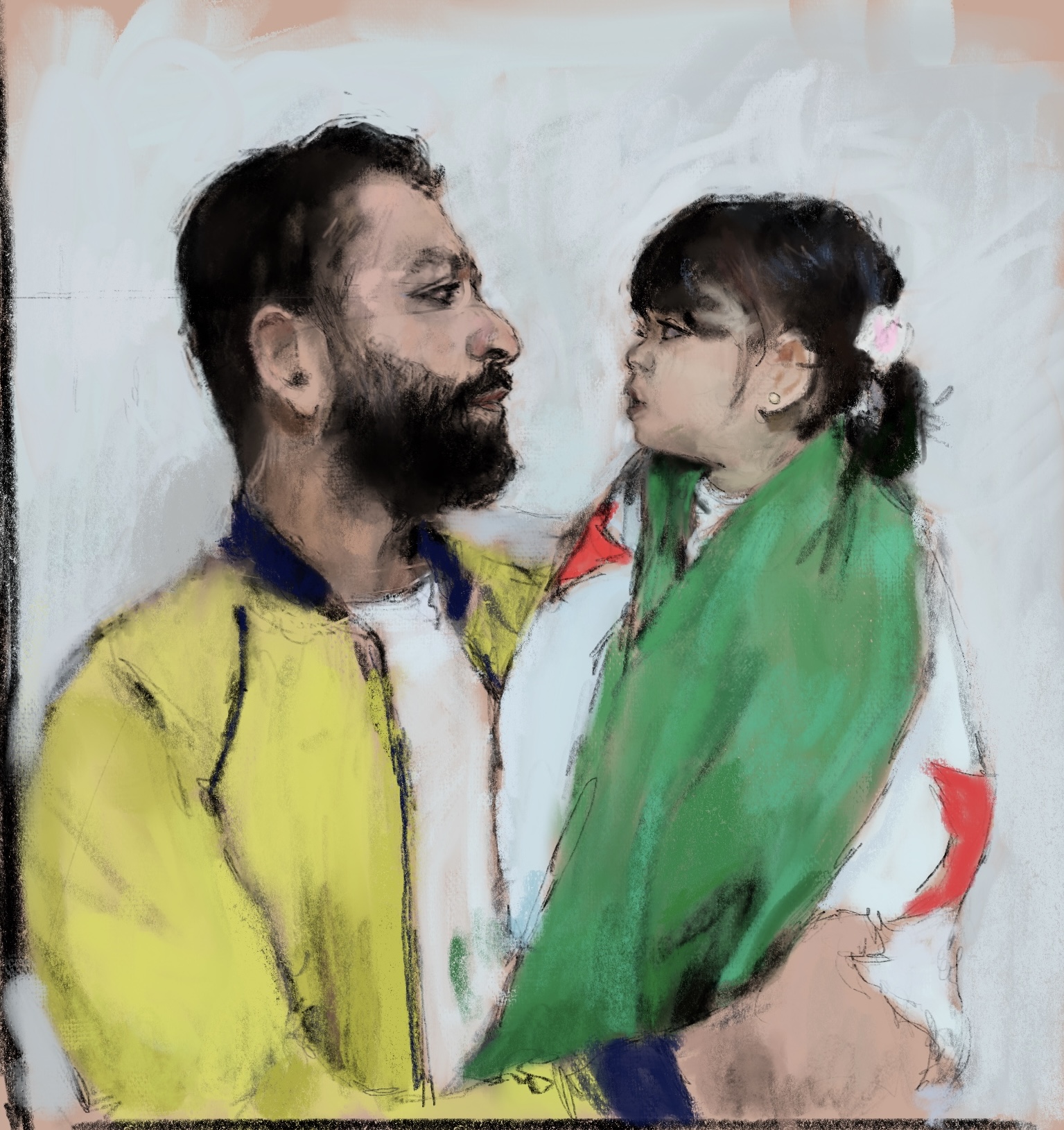 Sketch. My friend Mohamed Al Shami was tortured in #Assad ‘s dungeons for leaving the murderous government army. To me, the beautiful life he created after surviving these horrors, is the ultimate victory of love and hope, over evil. Love to Mohamed and his family.