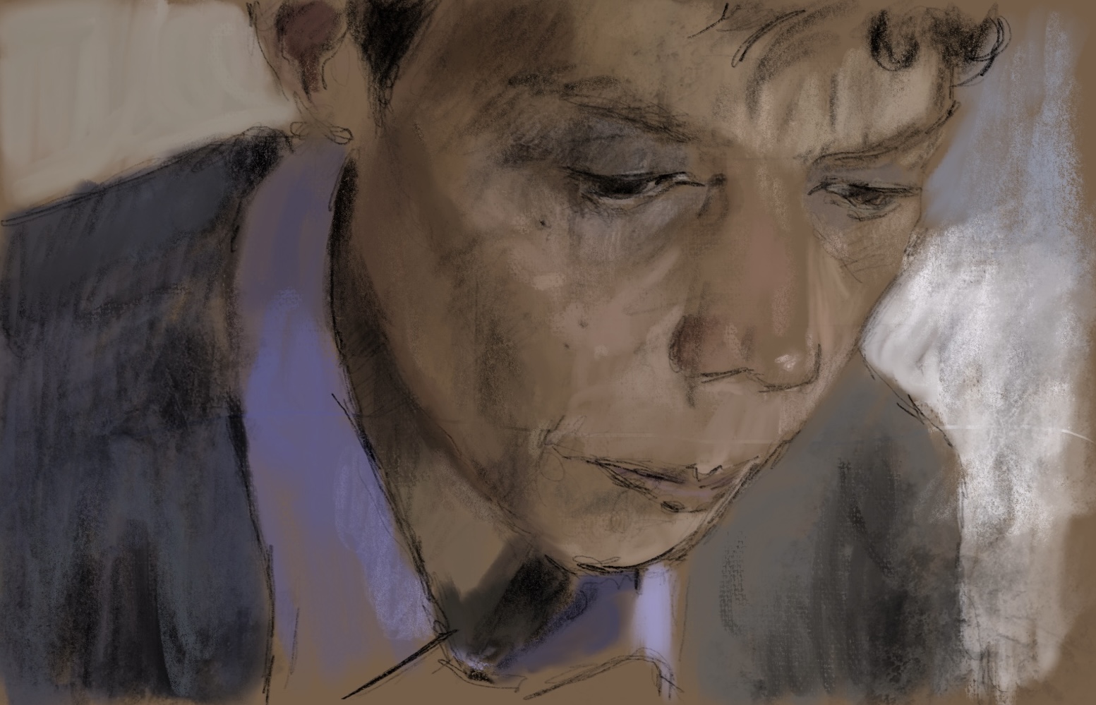 Sketch.My friend #MazenAlHamada was always scrolling, checking, his phone or laptop for information about the safety of his loved ones, and fellow #detainees in #Syria . #Assad had torn so many families apart, creating incessant instability.Missing 1,134 days