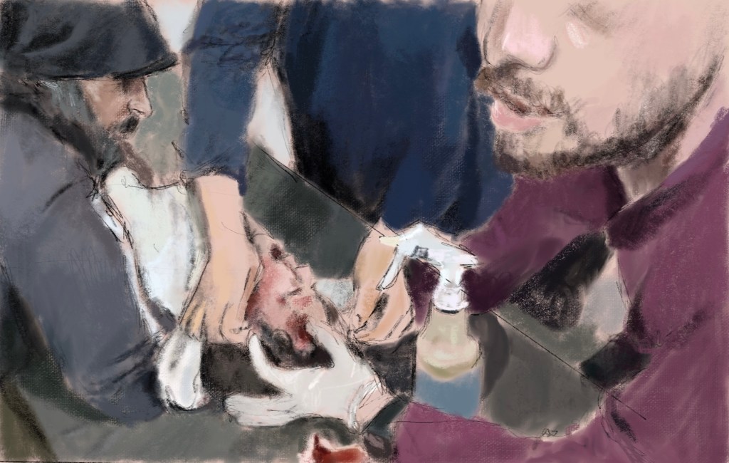 Sketch from eyewitness video.“Today, a child was killed and several were injured by #Assad regime artillery shelling on the town of #Sarmin, Idlib. This is the reality for Syrians every single day. “Via @syrianetf 0 April 10, 2023 Written by marcnelsonart Syria Share this: Share on Facebook (Opens in new window) Facebook Share on X (Opens in new window) X Like Loading...