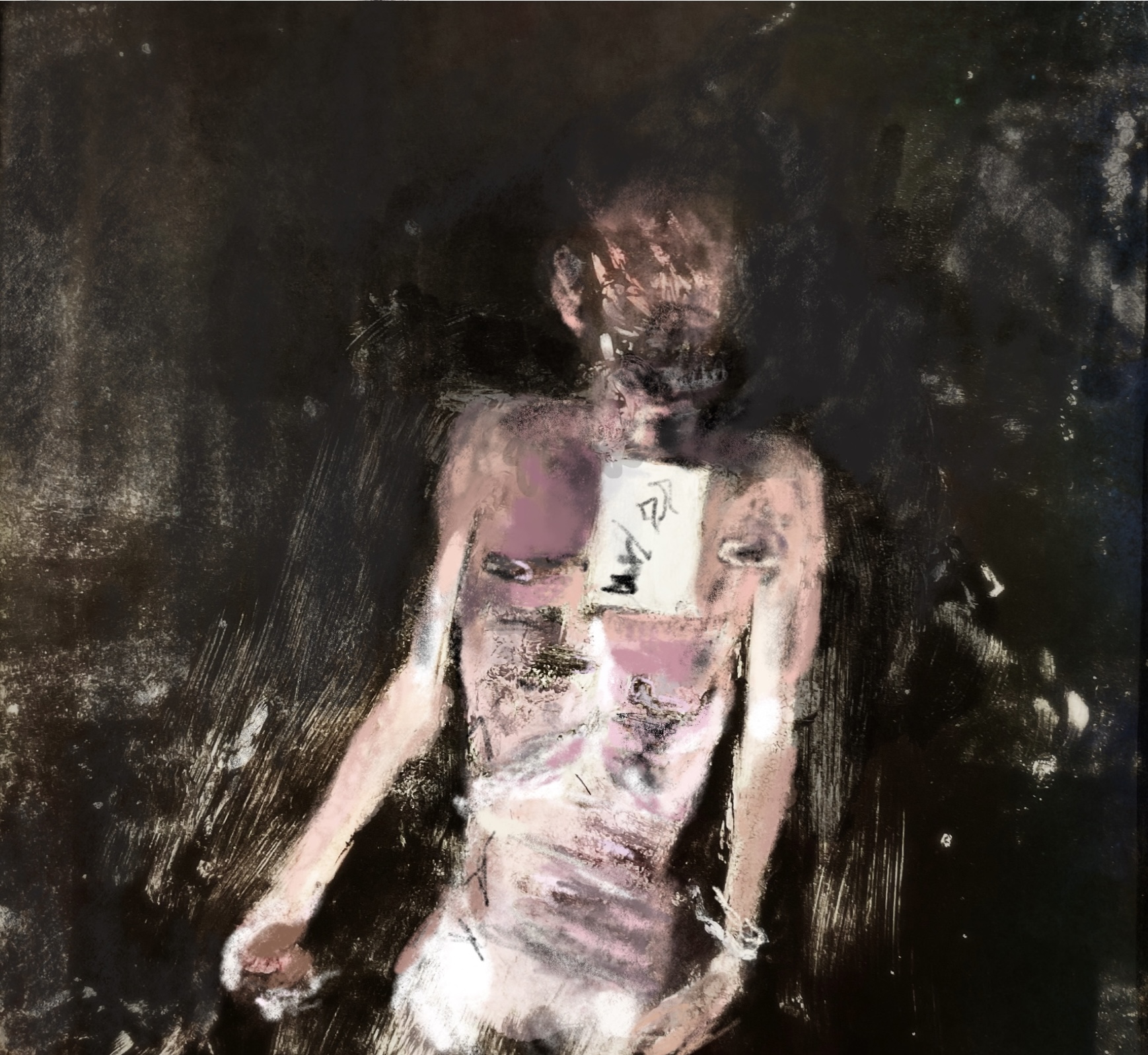 Sketch (incl. #monotype , acrylic).From the testimony of @Syr_GraveDigger before #Congress 4/18/23 :“Twice a week we received three to four pickup trucks with 30 to 40 bodies, still warm, of civilians that had been executed in #Sednaya prison.” #Syria #Assad #WarCrimes
