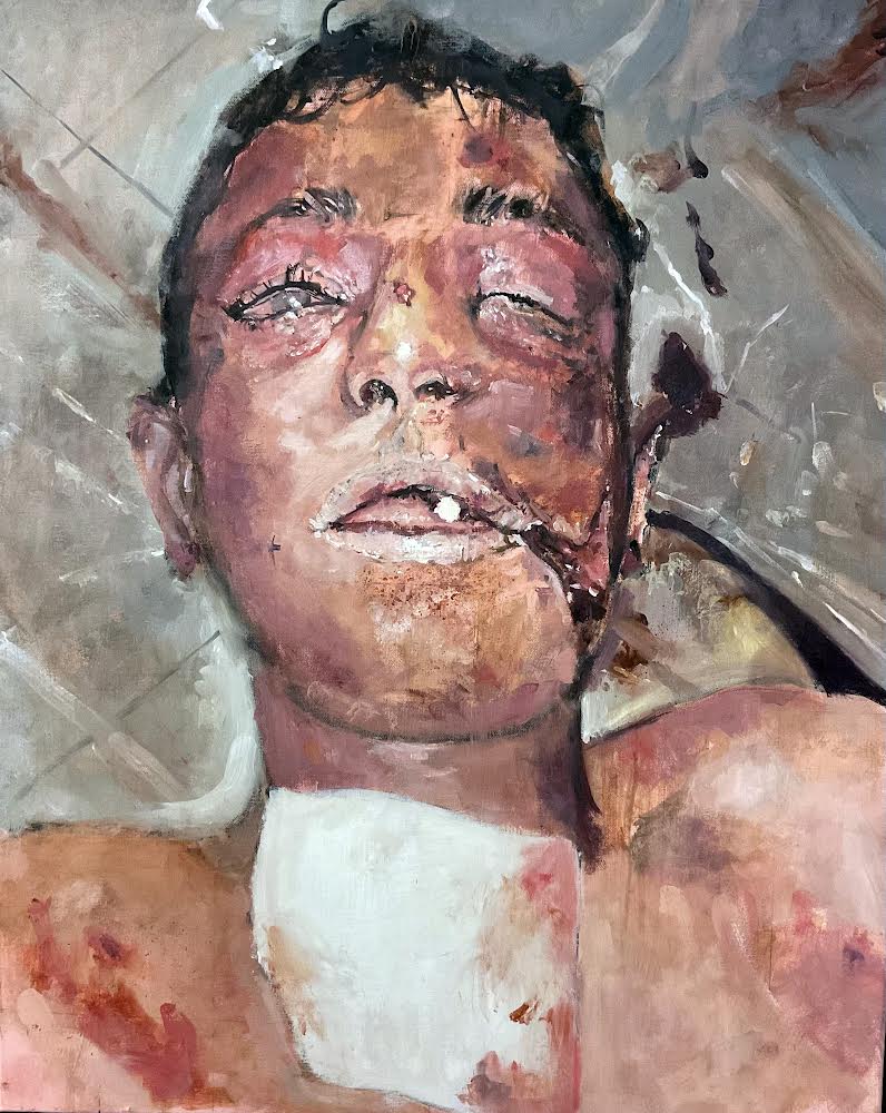 Painting (oil/acrylic on canvas). A piece for my upcoming exhibit at WIU. Thamer al-Sahri , a 15 yr. old child tortured, mutilated, and murdered by the #Assad regime in #Syria . His crime? Attending a peaceful demonstration. These atrocities will NOT be ignored!
