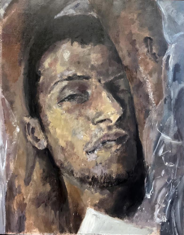 Painting (oil/acrylic on wood).This is Ahmed, the son of one of my friends. The #Assad Regime arrested him while he was at his mother’s funeral. His crime? A song on his cell phone that the government did not like. His punishment? Torture and death in Assad’s prisons.