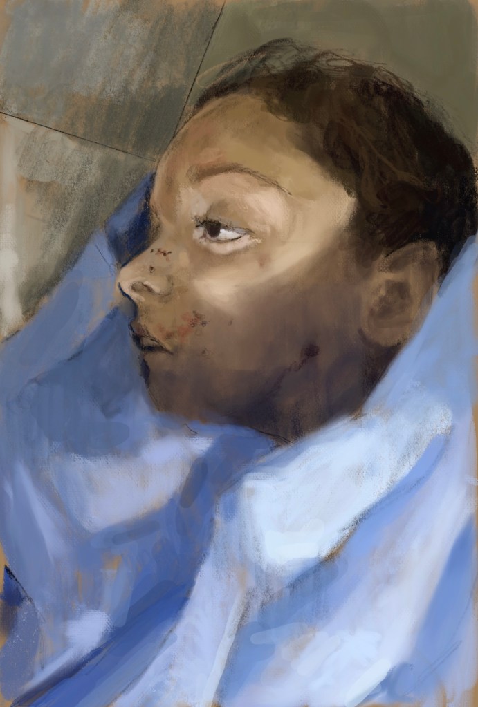 Sketch from eyewitness photo.A horrendous week of abject murder wrought on the #civilians of #Idlib #Syria by the #Assad regime and #Putin #Russia . This young girl was killed when her school was targeted.@RonanLTynan @RanaKabbani54 @RenaNetjes @badiucao @johnsweeneyroar