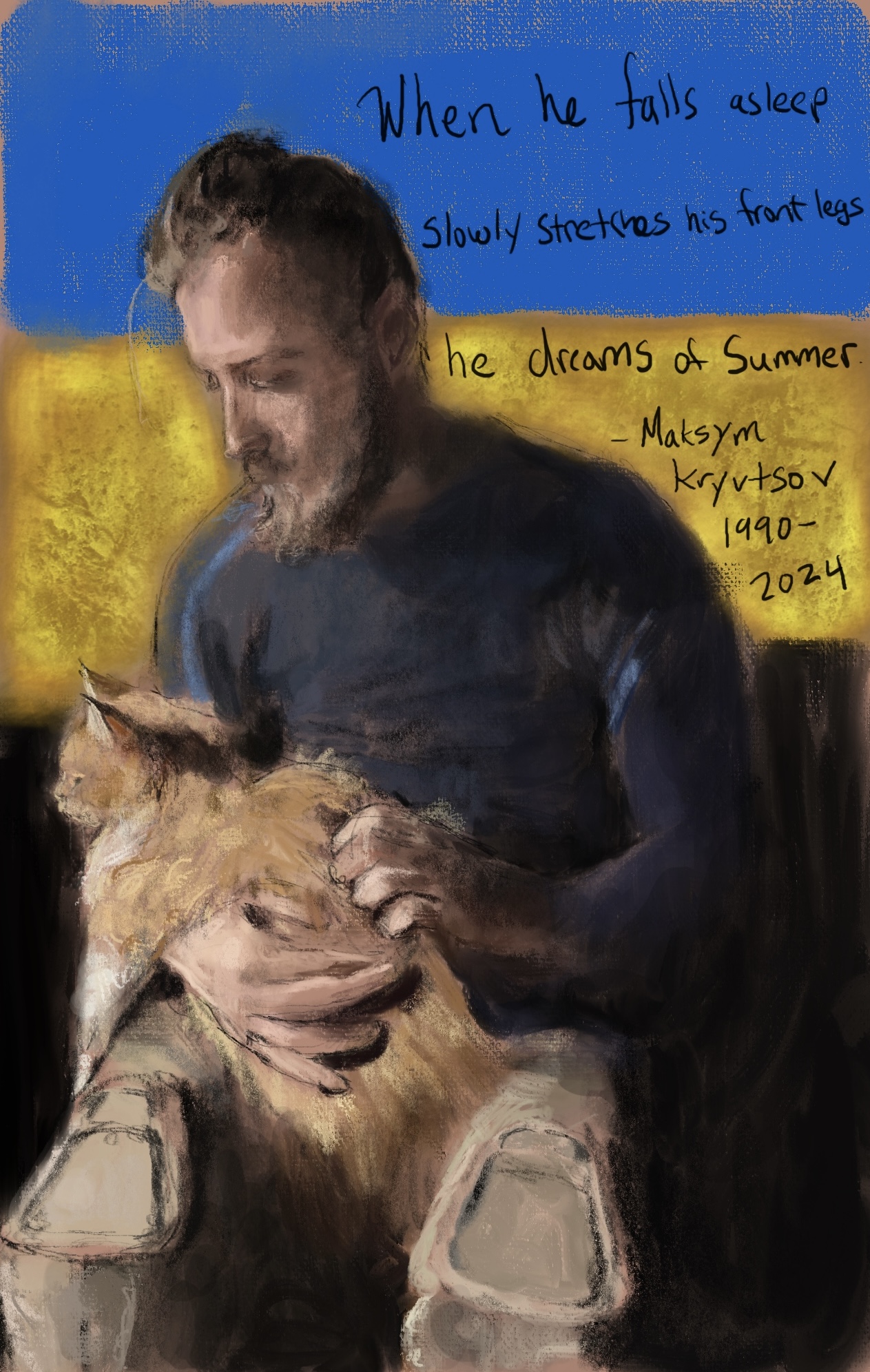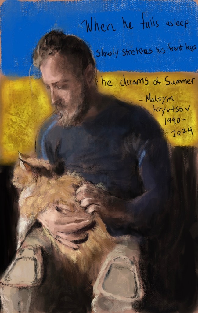 Sketch.Maksym Kryvstov , a #Ukrainian poet and soldier, was murdered by #Putin on 1/7/23 . His words, a beautiful gift to the world, will never be silenced. 0 January 10, 2024 Written by marcnelsonart SlavaUkraini PutinIsaWarCriminal Share this: Click to share on Facebook (Opens in new window) Facebook Click to share on X (Opens in new window) X Like Loading...