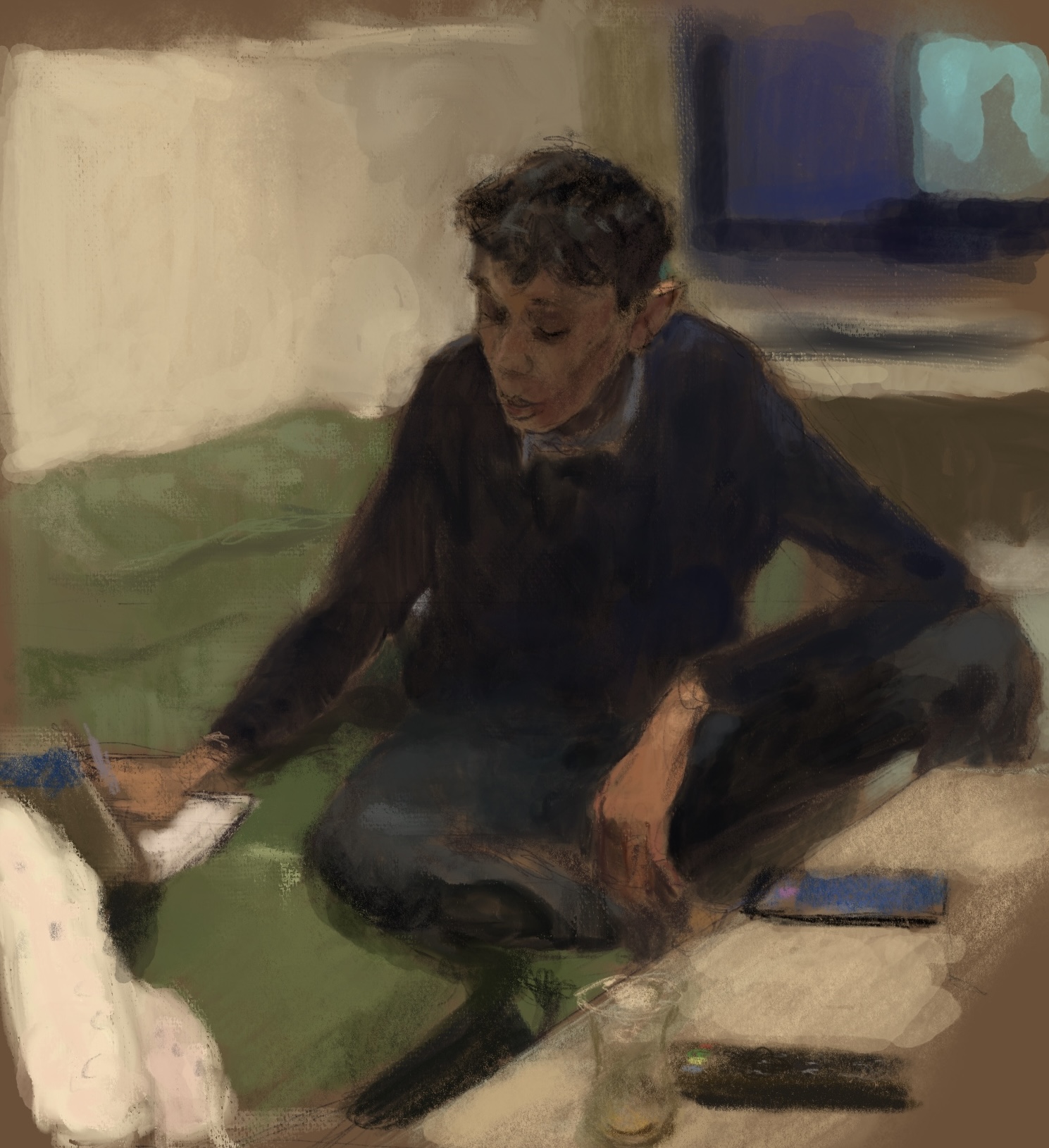 Sketch from friend’s photo.With news of #Navalny ‘s murder at the hands of #Putin , I am thinking of my friend, torture survivor #MazenAlHamada , who, like Navalny, despite threats to his life, returned to his homeland #Syria to try to effect positive change.Missing 1,455 days.