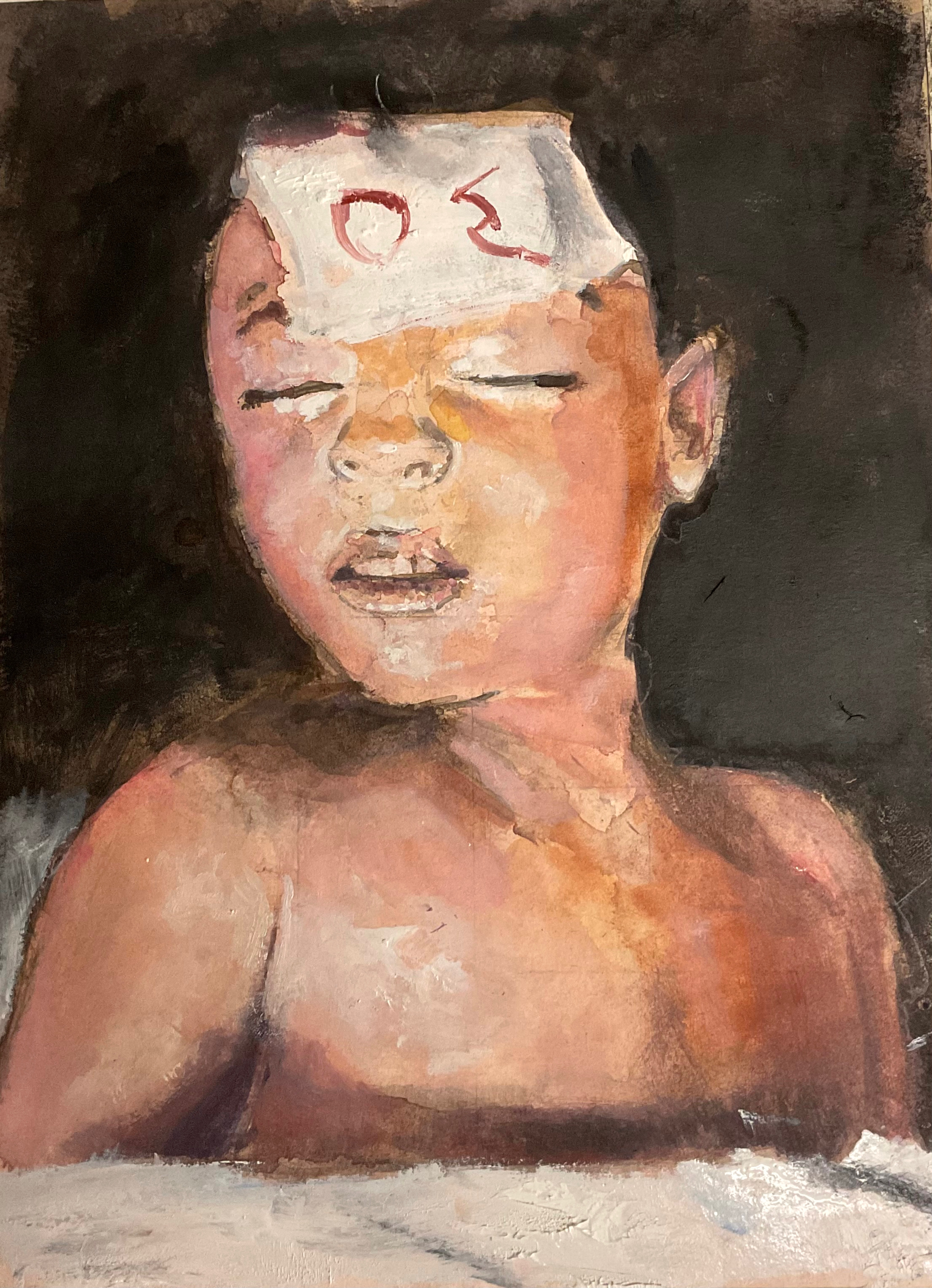 Sketch from eyewitness photoTo honor the victory of the @SyrianCenter legal team at the Palais de Justice in Paris, and to remember the children murdered by #Assad in the #Ghouta gas attacks, I will draw, when possible, a child victim a day for the next few months.