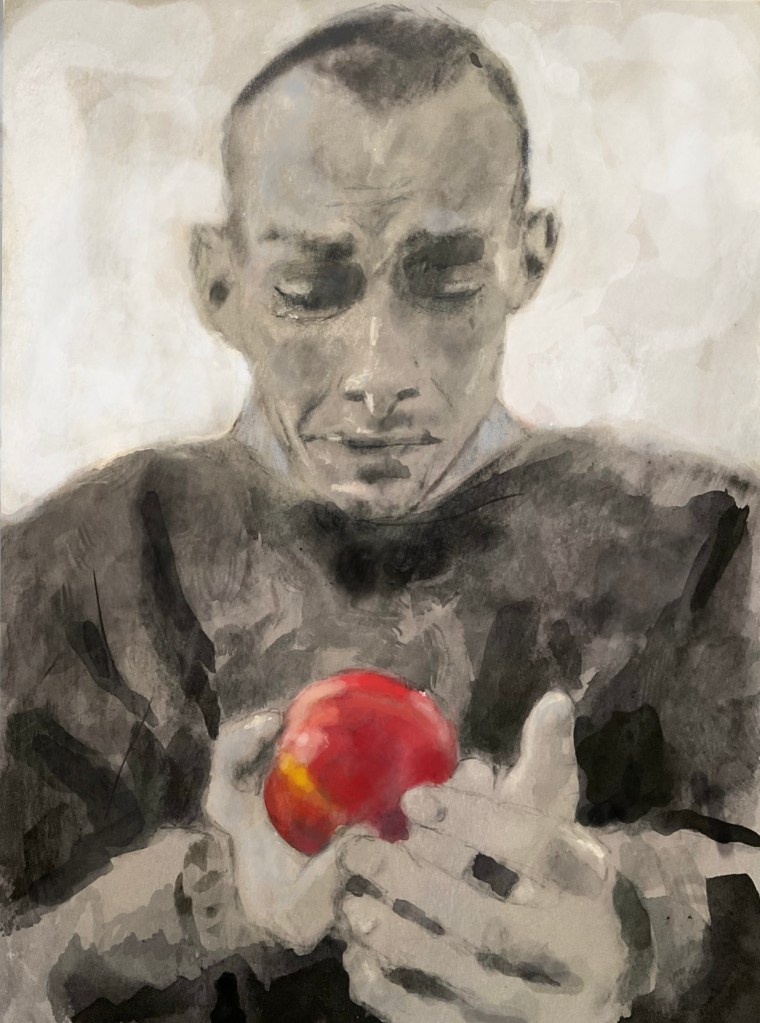 Sketch from eyewitness photo (incl. #ink #gouache). 0 October 8, 2024 Written by marcnelsonart inktober2024 #4. An emaciated #Ukrainian #POW weeps as he holds an apple given to him after his release from #Putin ‘s torture prisons.This image is truly soul wrenching. This man should be enjoying a peaceful life. #VPDFO Share this: Share on Facebook (Opens in new window) Facebook Share on X (Opens in new window) X Like Loading...