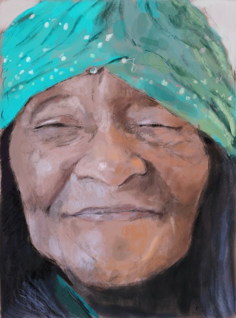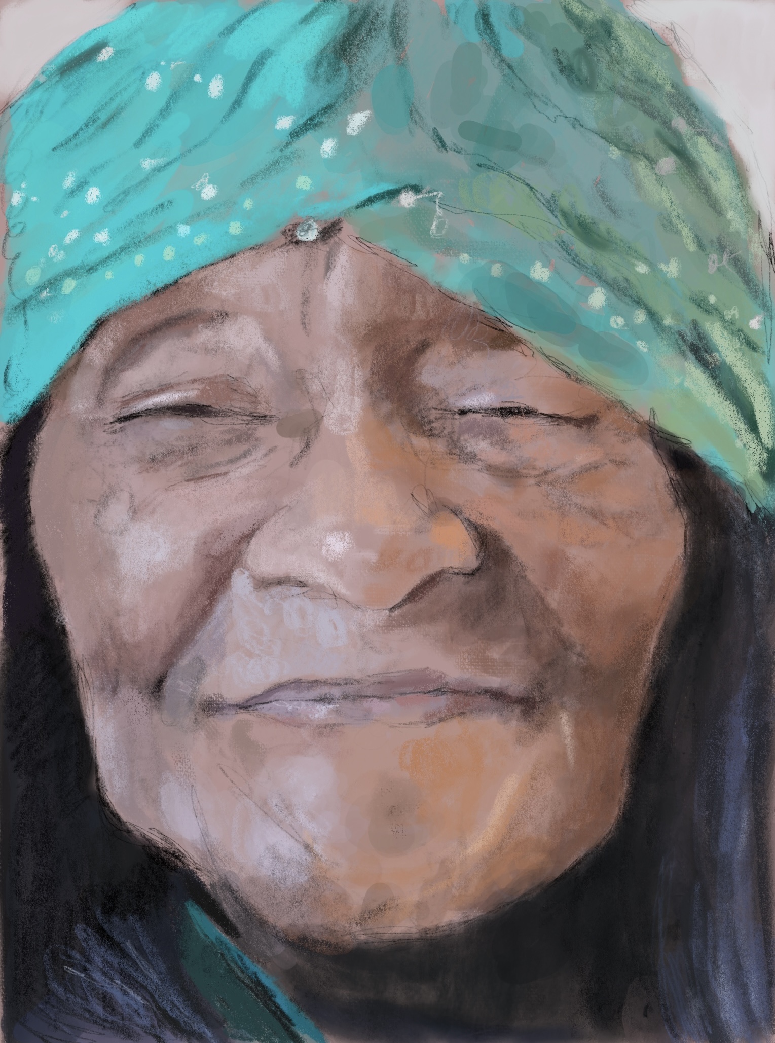 Sketch from @TheBWSTimes109 yr. old Tulsa Race Massacre survivor Lessie Benningfield Randle casts her vote for @KamalaHarris .“All of our children deserve a president who will inspire them to learn from history, not a tyrant who will try to erase it”.