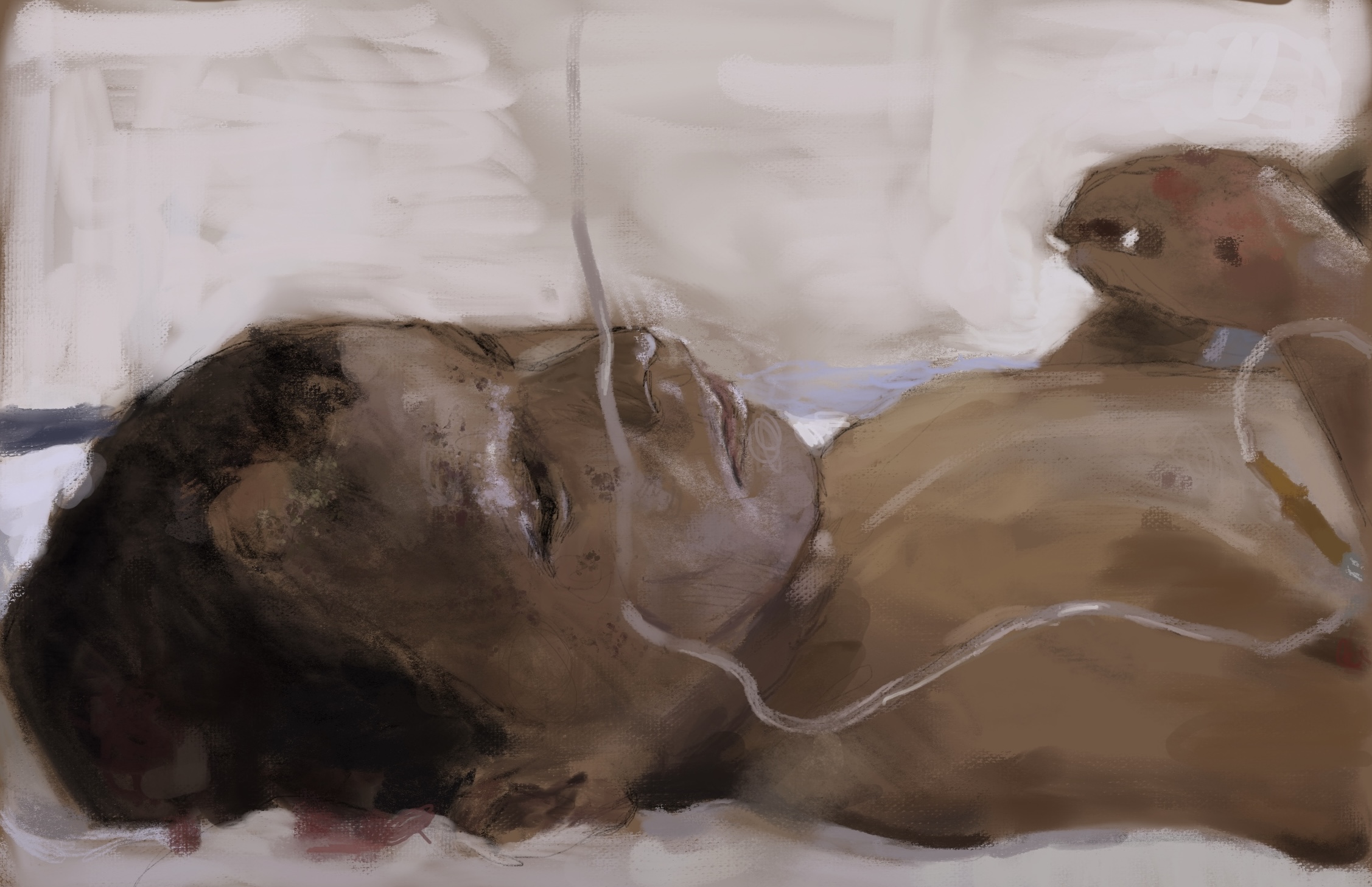 Sketch from eyewitness photo.The #Assad regime is responding to its recent losses by doing the only thing it knows how to do: attacking defenseless civilians. This child was wounded in #Idlib #Syria by the regime’s ongoing crimes against humanity.
