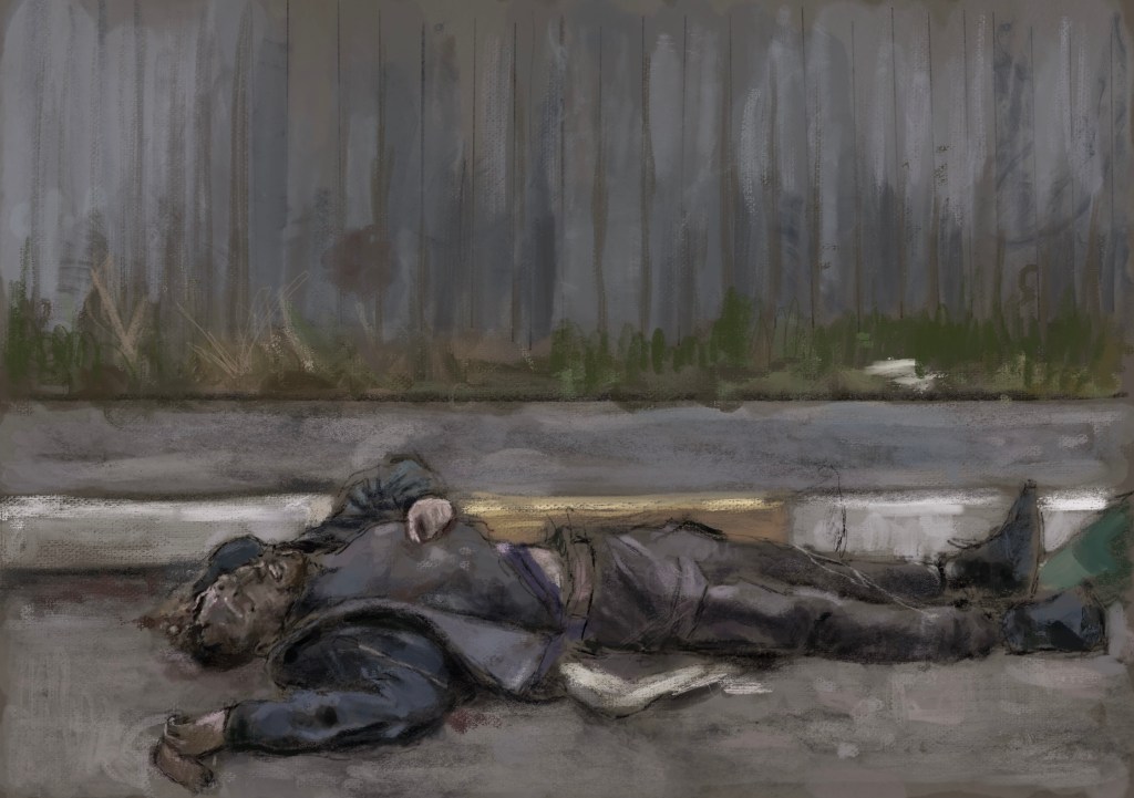 Everyday I will post a sketch documenting #Putin ‘s war crimes.