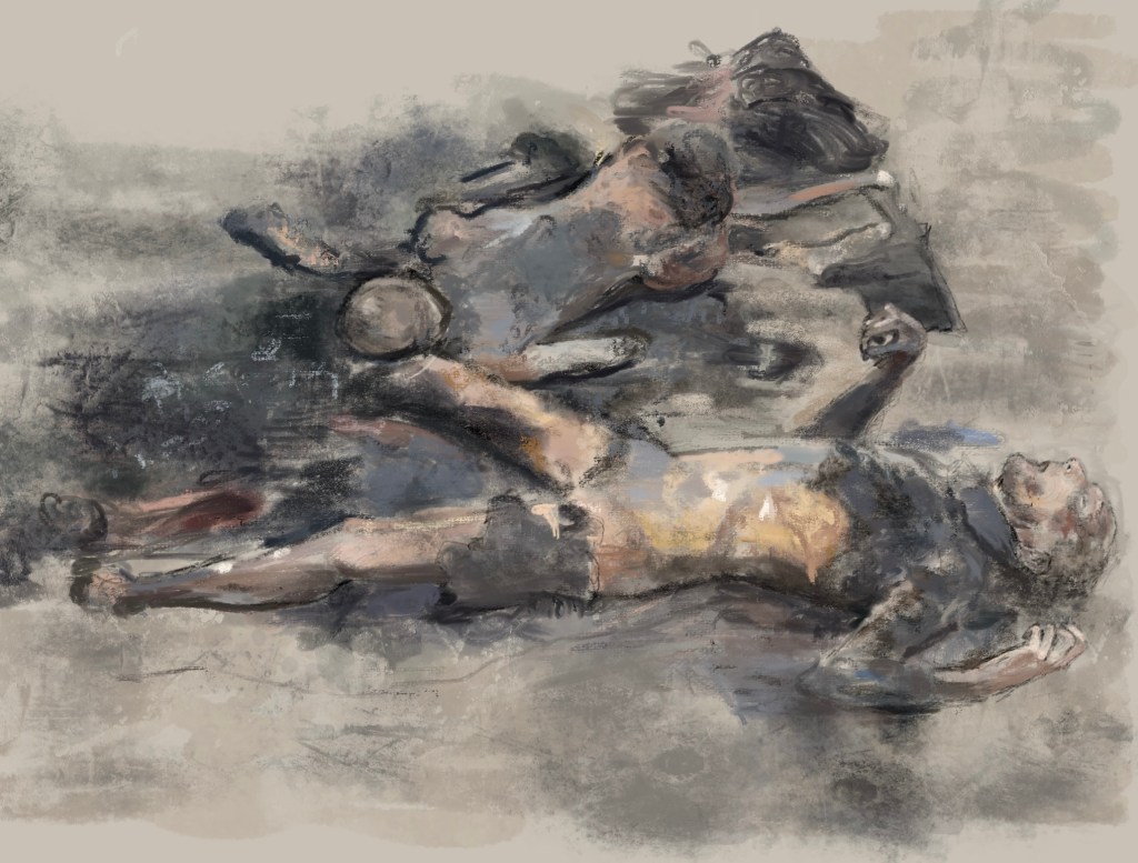 GRAPHICsketch from eyewitness photo. #Bucha #UkraineI am an American. I am also a human with values. I am utterly disgusted by our cowardly president #Trump , and his bromance with the war criminal #Putin.Everyday I will post a sketch documenting #Putin ‘s war crimes.