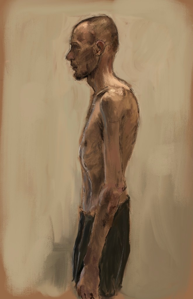 sketch from eyewitness photo. #Russia starves/tortures #POW #UkraineI am an American. I am also a human with values. I am disgusted by our cowardly president #Trump , and his collusion with #Putin.Everyday I will post a sketch documenting #Putin ‘s war crimes.