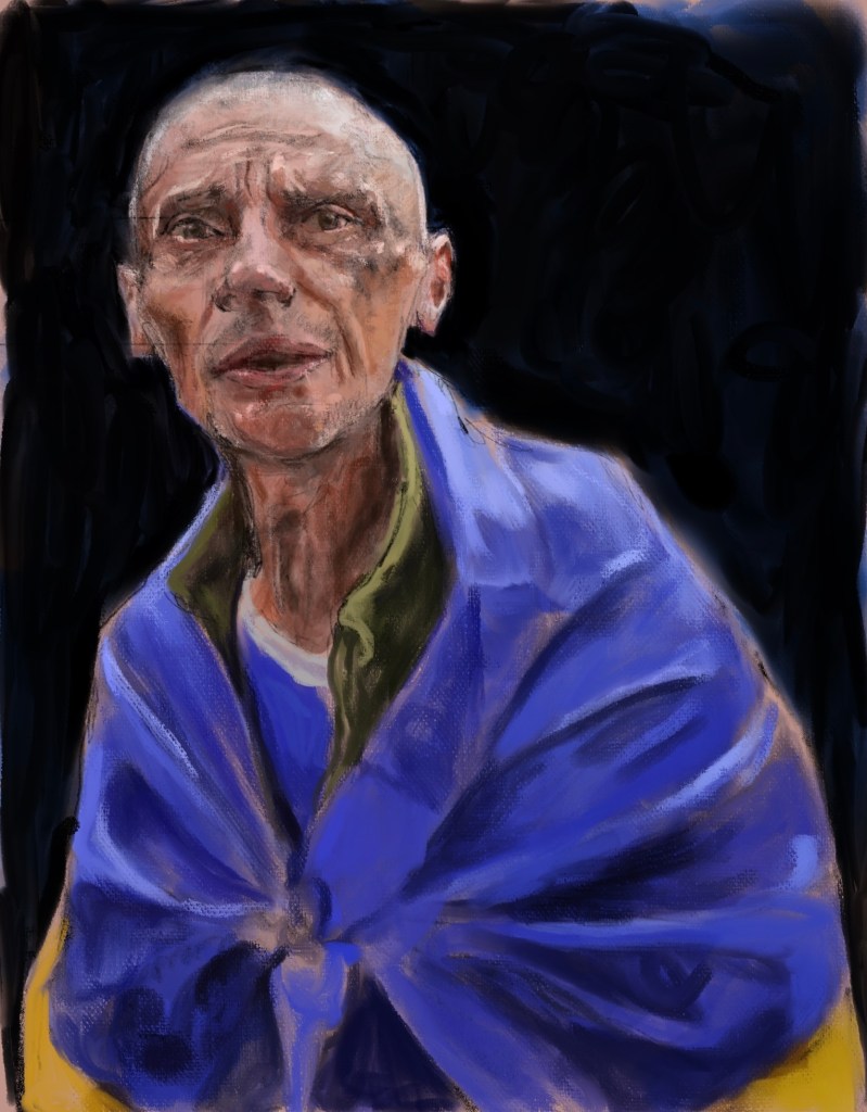 Sketch from eyewitness photo.A #Ukrainian #POW .A man who should be enjoying a peaceful life was thrown into a maelstrom of violence, torture, cruelty, and destruction to satisfy the genocidal whims of #Putin #Russia .Putin, like #Assad is swimming in blood.Let them drown.